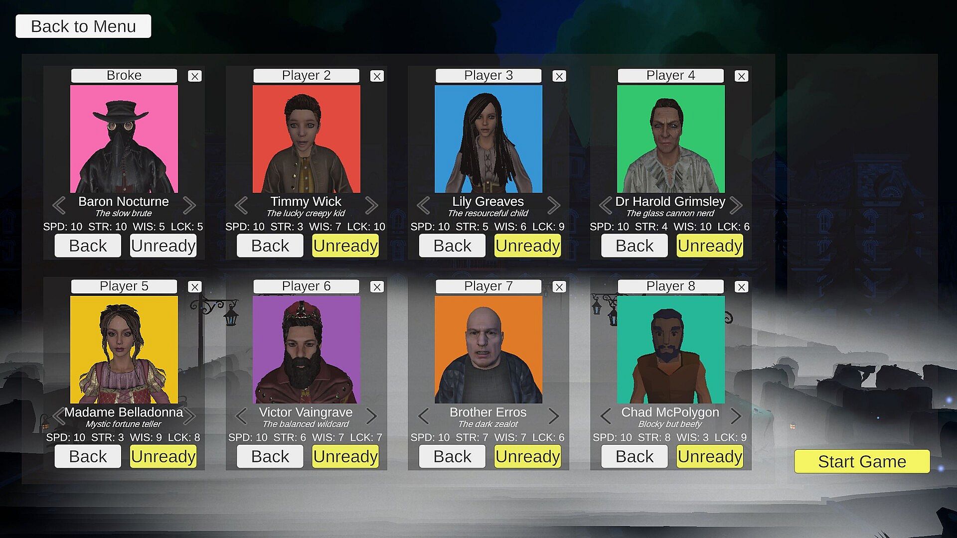 Players take turns moving through a growing manor, discovering new rooms, finding items, and triggering strange events. Between rounds of exploration, chaotic minigames and house effects shake things up, forcing players to adapt, cooperate, and sometimes get in each otherās way.