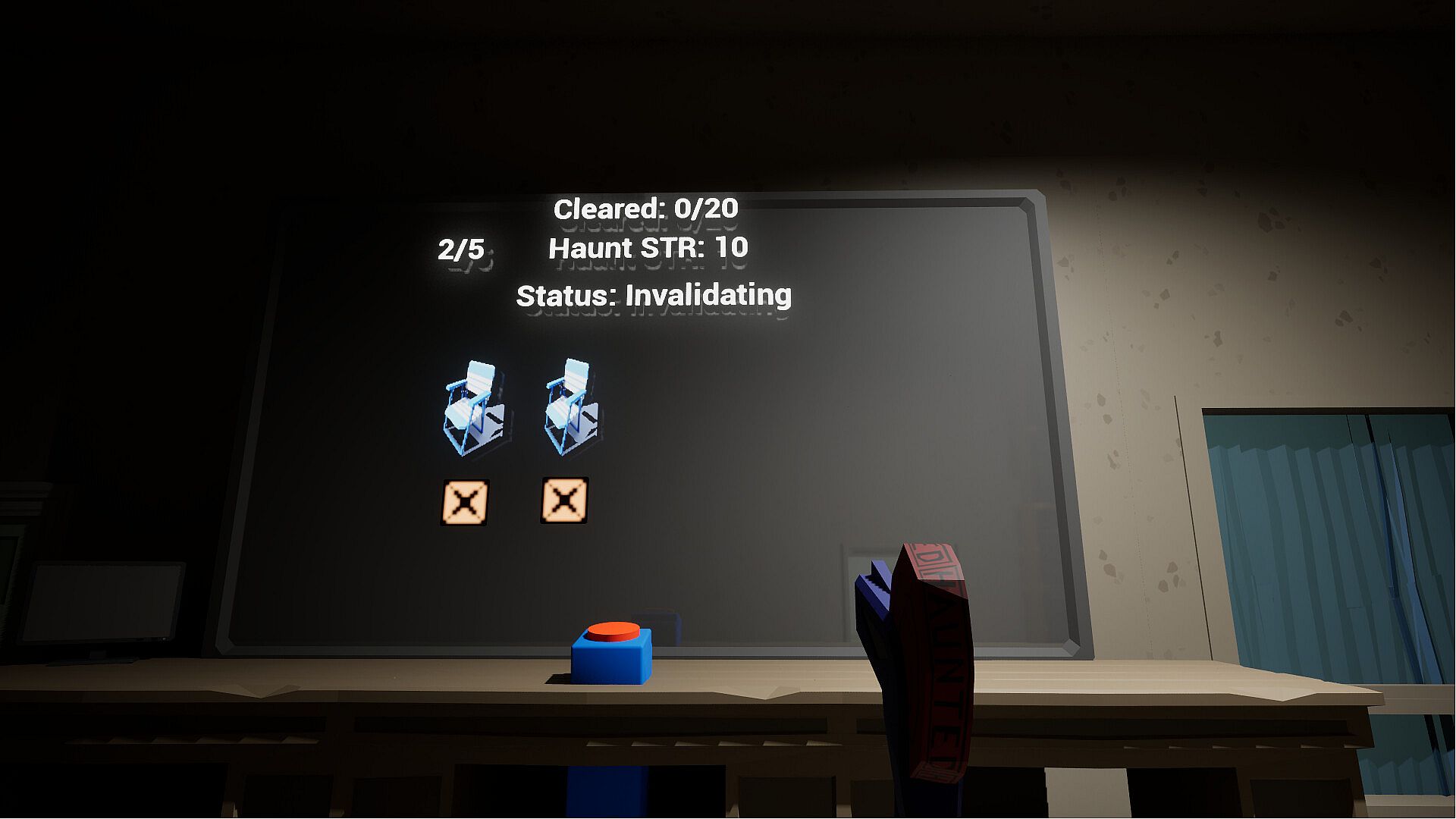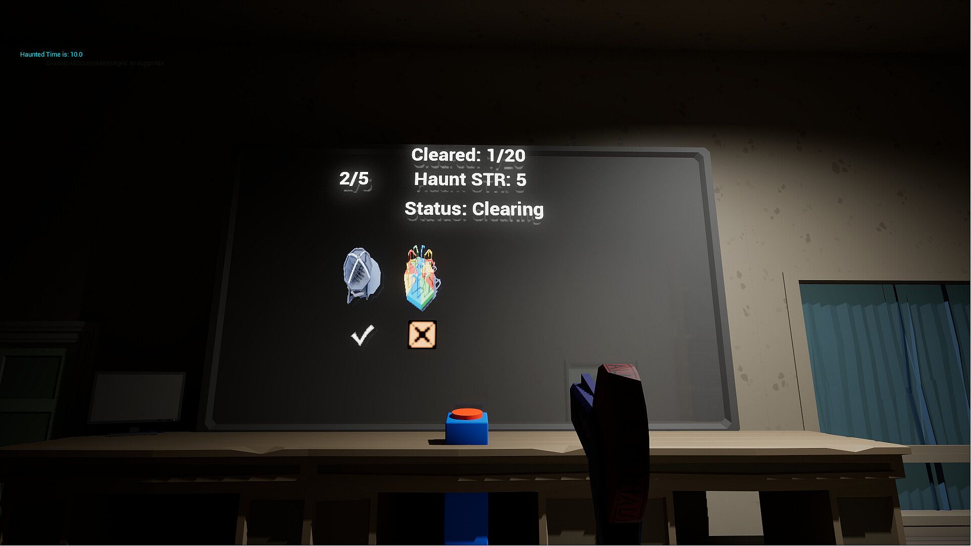 Walk around the facility and tag items you believe to be haunted before reporting them to make sure you clear their haunted status. Use the control field to double check the haunts you tag before you report them, it’s better to not tag than to tag too many false haunts. Can you surpass the test?