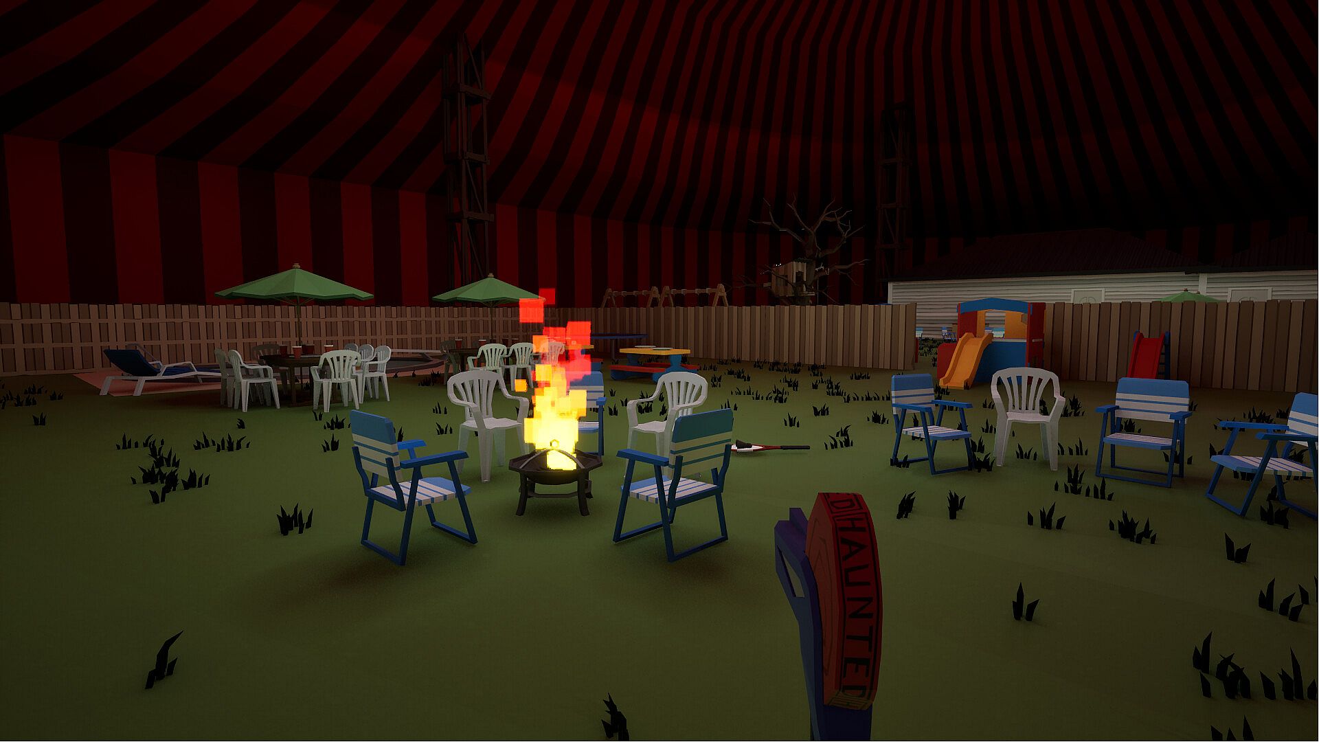 The tent is set up and the haunted items are ready to play!