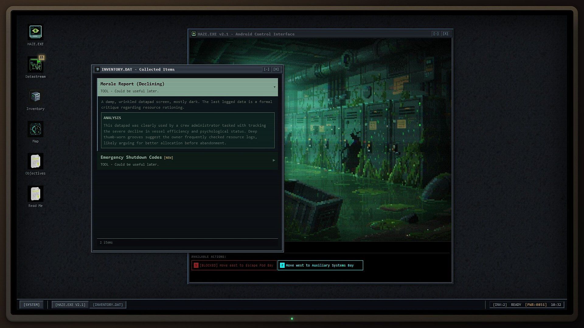 Collect and Leverage Scavenge tools, data fragments, and leverage items that can be used to unlock new areas or gain advantage in AI encounters. Every item has a purpose.
