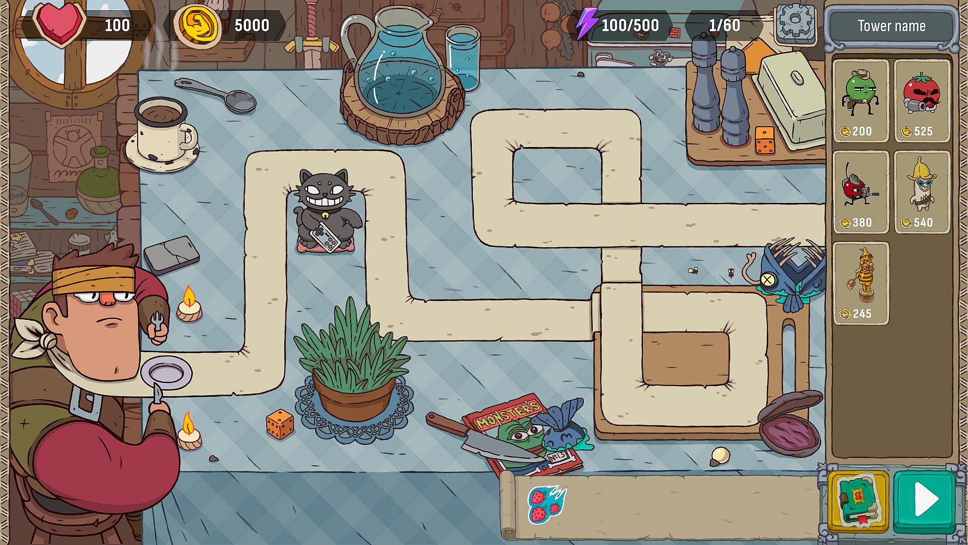 Place defensive towers made of healthy food. Each tower has unique abilities effective against specific types of junk food sent by the dark wizard. Upgrade your towers by choosing one of three upgrade paths—each unlocks new powerful abilities and changes your defensive strategy.