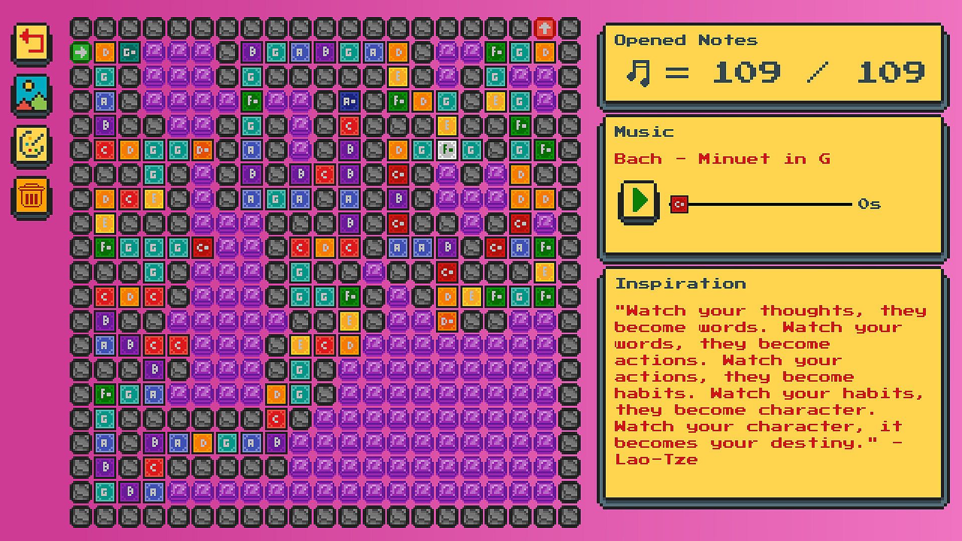 • Levels divided into 5 worlds, each world belonging to a composer.