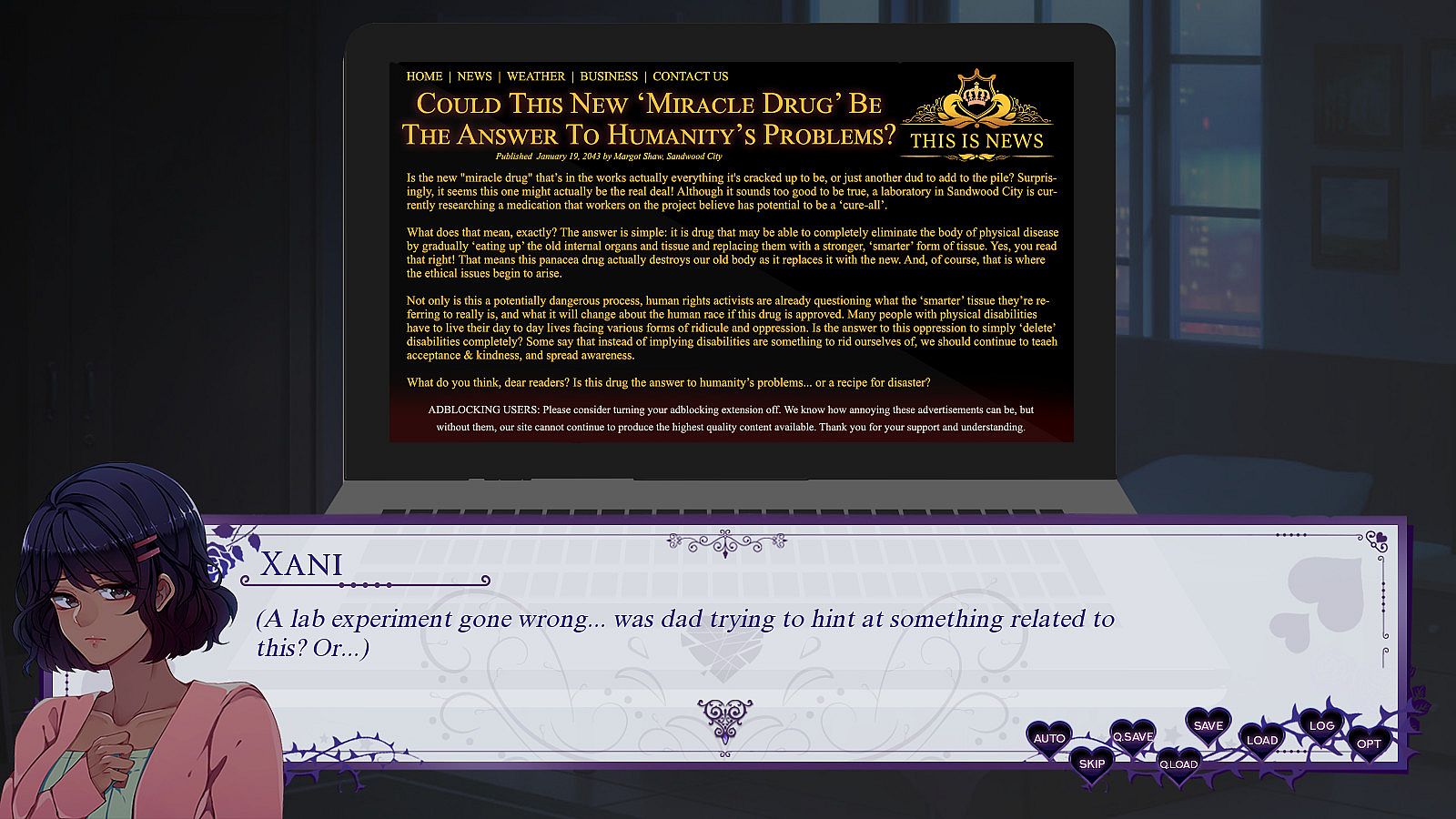 In this mysterious otome game, play as a protagonist (name customizable but "Xani" by default) struggling to cope with the hand life has dealt you. Your mother's death was a tragedy that left you cynical and numb to the world. Now, though, greater challenges are piling up fast - and it all begins when you find out you are not entirely human.