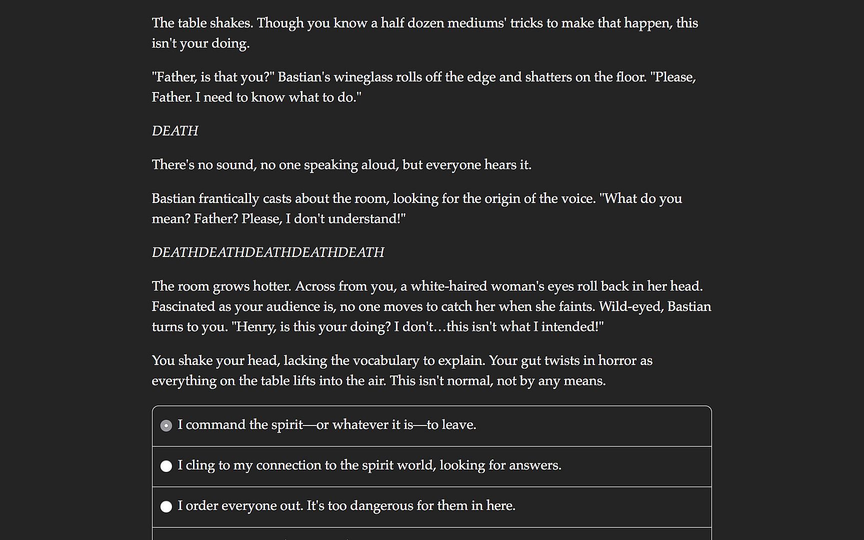 Heart of the House is 360,000-word interactive Gothic novel by Nissa Campbell. It's entirely text-based—without graphics or sound effects—and fueled by the vast, unstoppable power of your imagination.