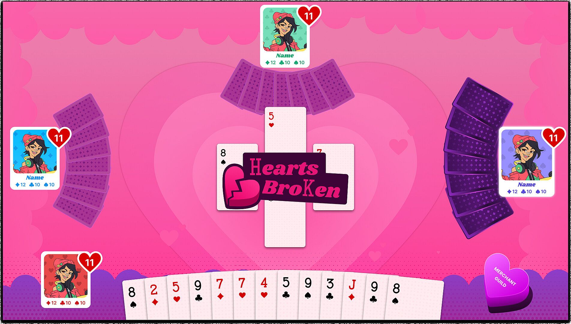 Help your clients find love in Hearts Will Be Broken! Play the classic game of Hearts in a matchmaking roguelite where each card you play can change the story, and your mission is love.  Banter with a cast of misfits looking for love, each with their own personalities, goals, and secrets.