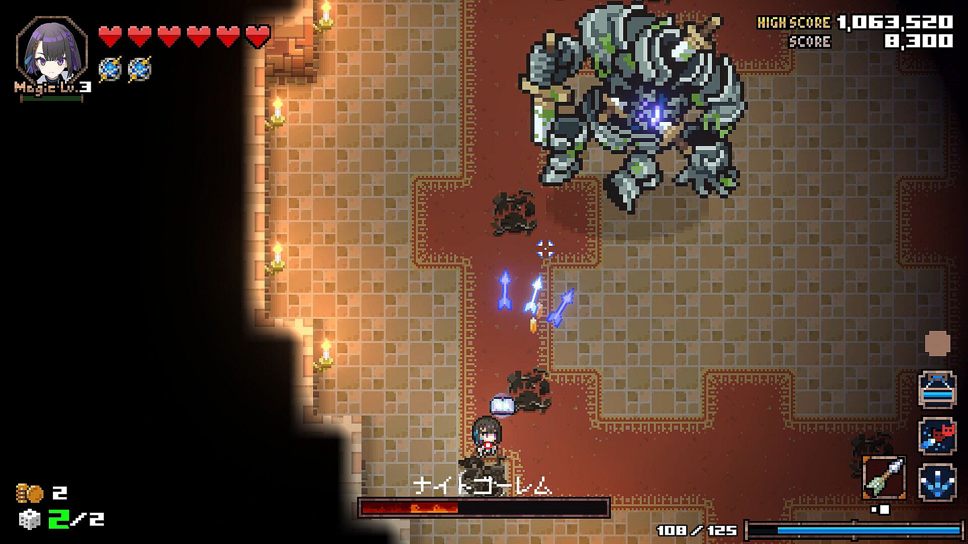 This is a bullet hell shooting game where you freely control your character and explore random dungeons.