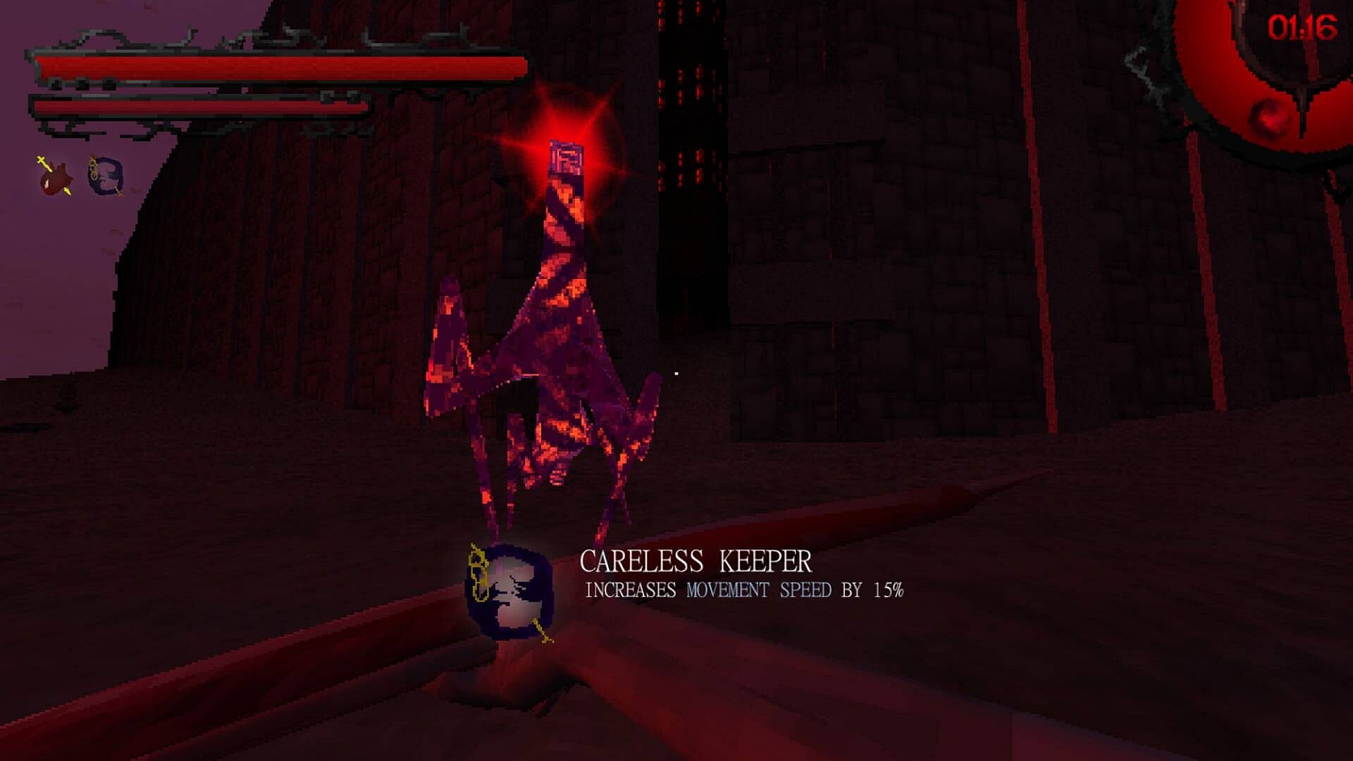 HEAVENSHATTER is a first-person 3d roguelike set in a distant post-post-post apocalyptic world, beyond matters and means. You are a mass of decaying limbs and microorganisms, emerged from the earth by a brutal, screeching roar. As you roam sandy desolate fields and ancient ruins, your goal is to charge two pillars to activate the great teleporter and escape.