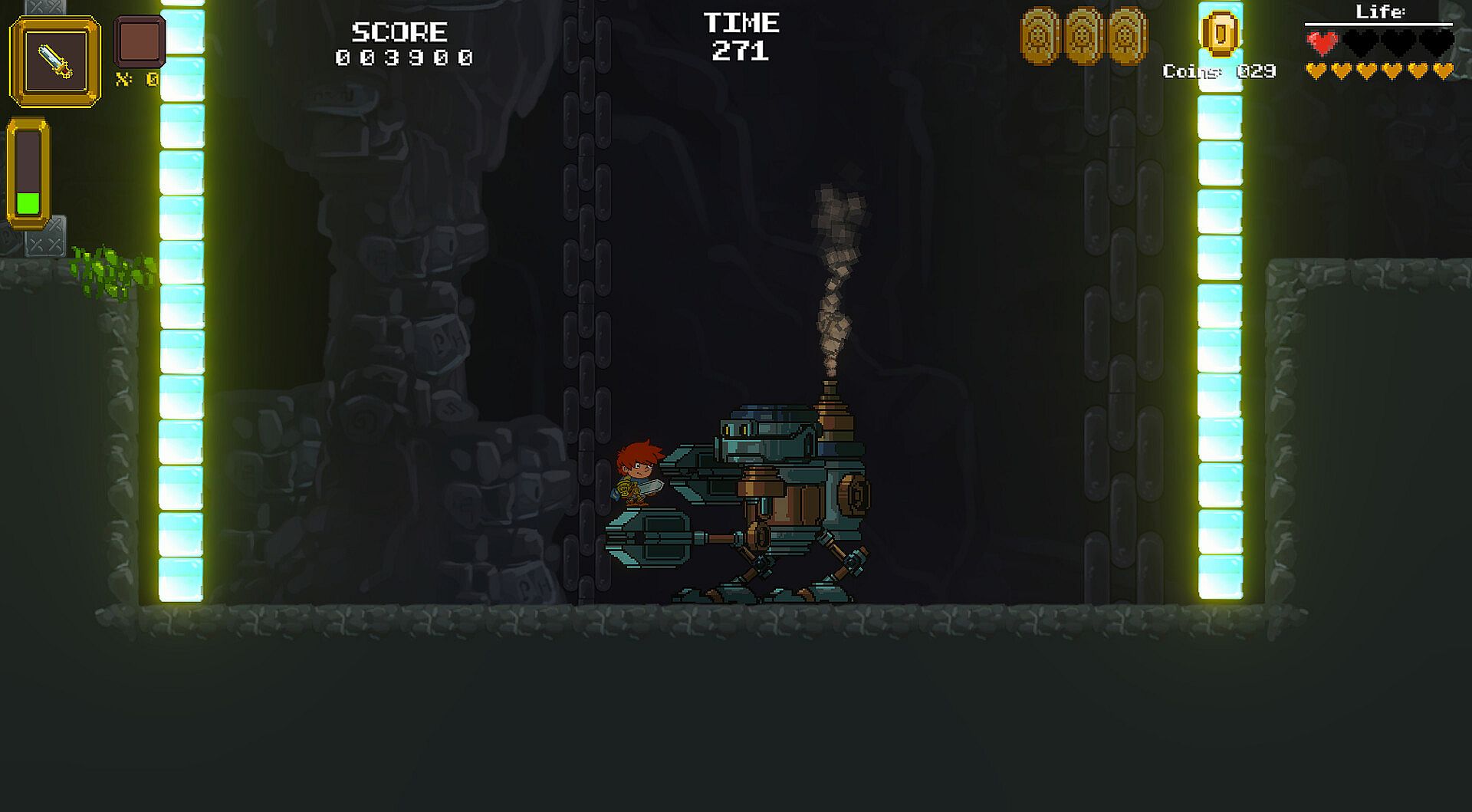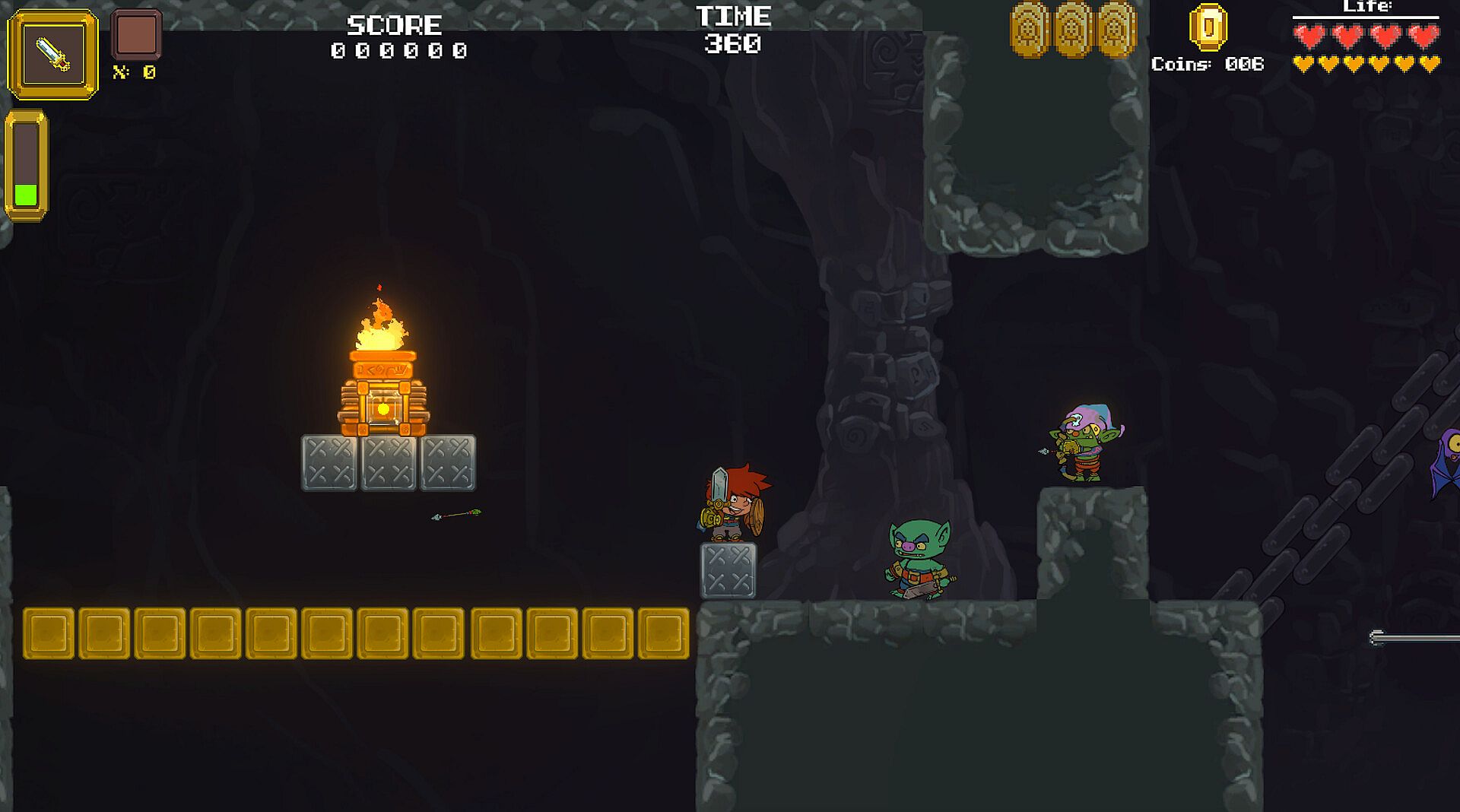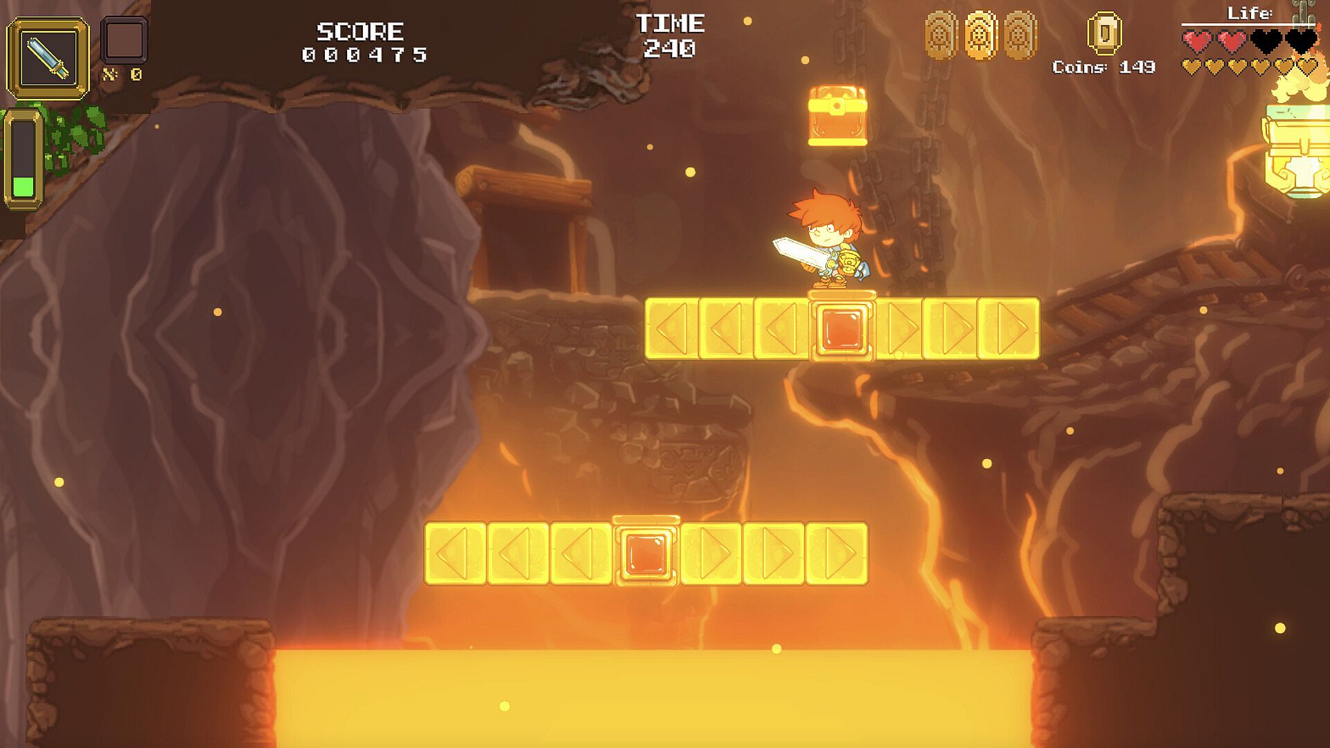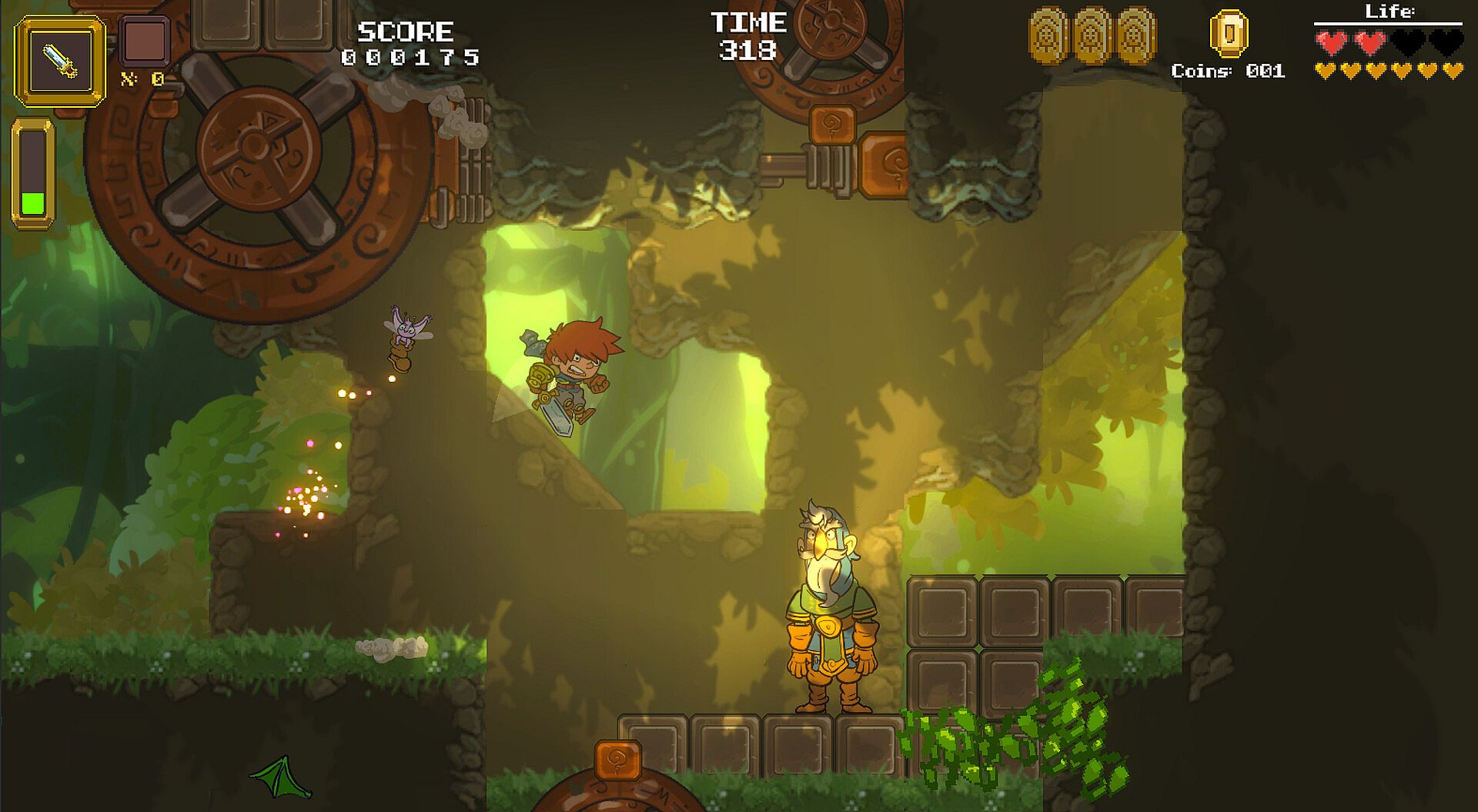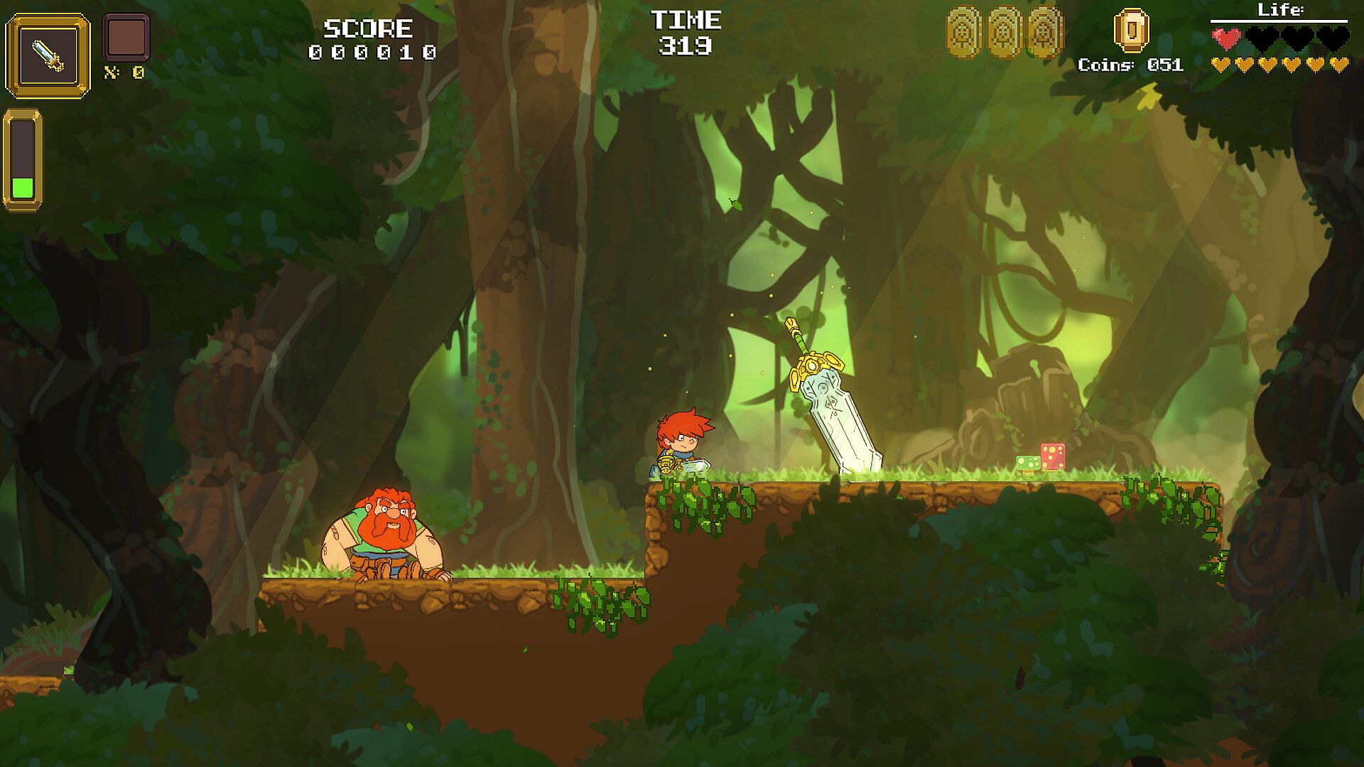 Heavy Sword is an 2D action adventure platformer with some RPG elements.