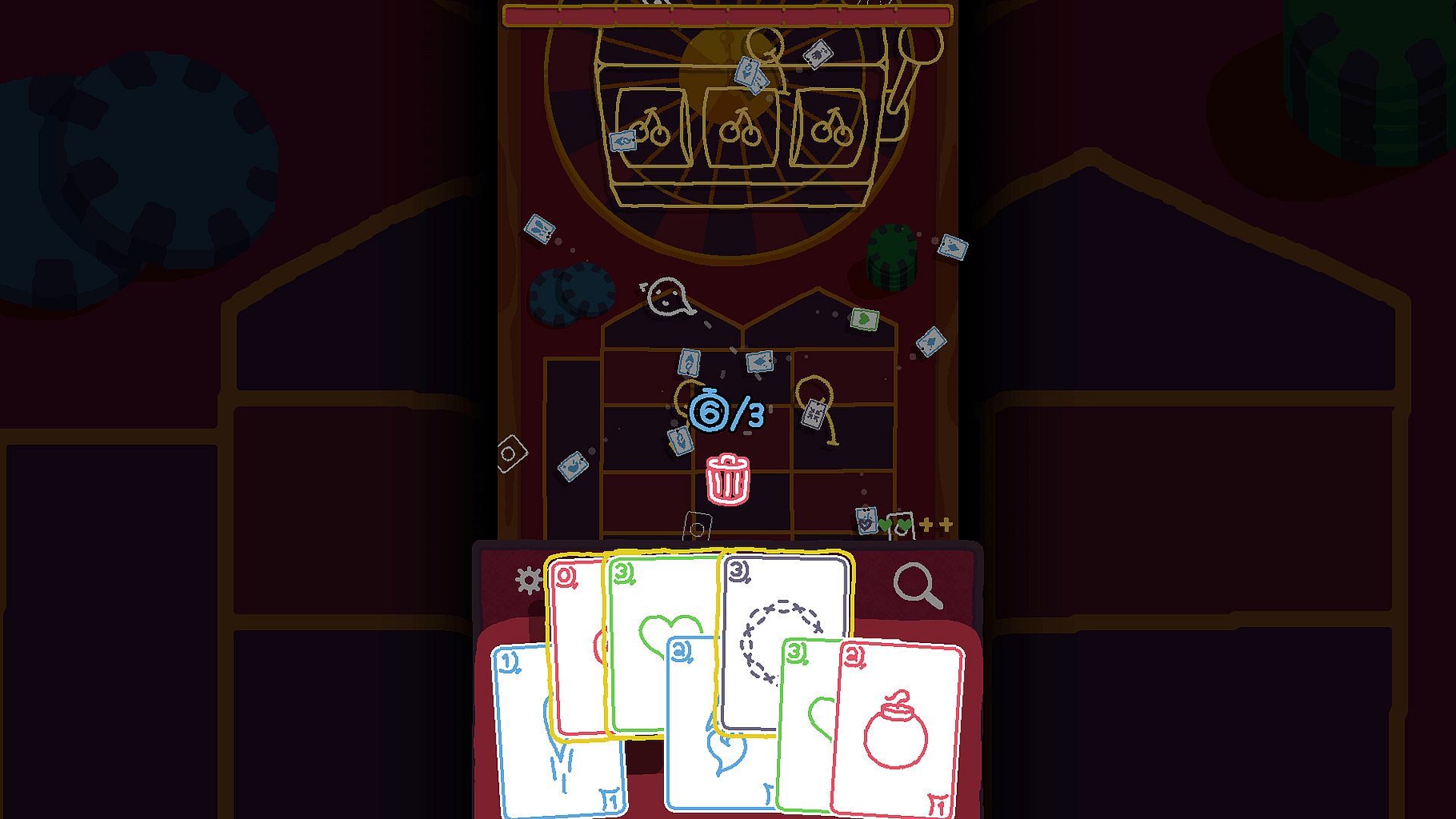 Throughout 5 different stages, Heck Deck will challenge your precision and dexterity during the bullet hell phases and your strategy when using your cards. Each card you pick up will cost you at least one life point, so you will have to be careful about which ones you pick on your way.