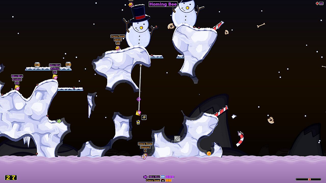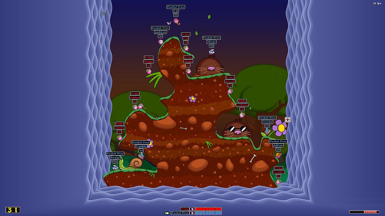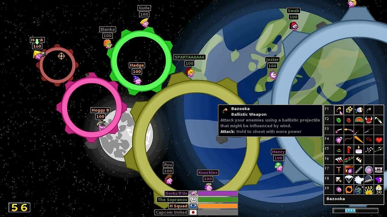 Command pink hedgehogs with attitude in turn-based strategy battles that mix artillery action and comedy. Assemble teams of soldiers to wage war across varied arenas, from hellish depths to outer space. Engage in hilarious combat using 58 weapons and utilities, like grenades for precision strikes or massive blasts from watermelon bombs and piano drops that reshape landscapes. Master the game through over 25 single missions for training, target practice, and challenges. Play on endless randomly generated maps across 37 environments, 44 preset image maps, or custom designs from the editor, with 25 modifiers to adjust matches. Up to eight players compete in local or network multiplayer against friends or AI, plus two campaigns with 24 missions total. Strategy fans who love multiplayer skirmishes and deep customization find their match here.