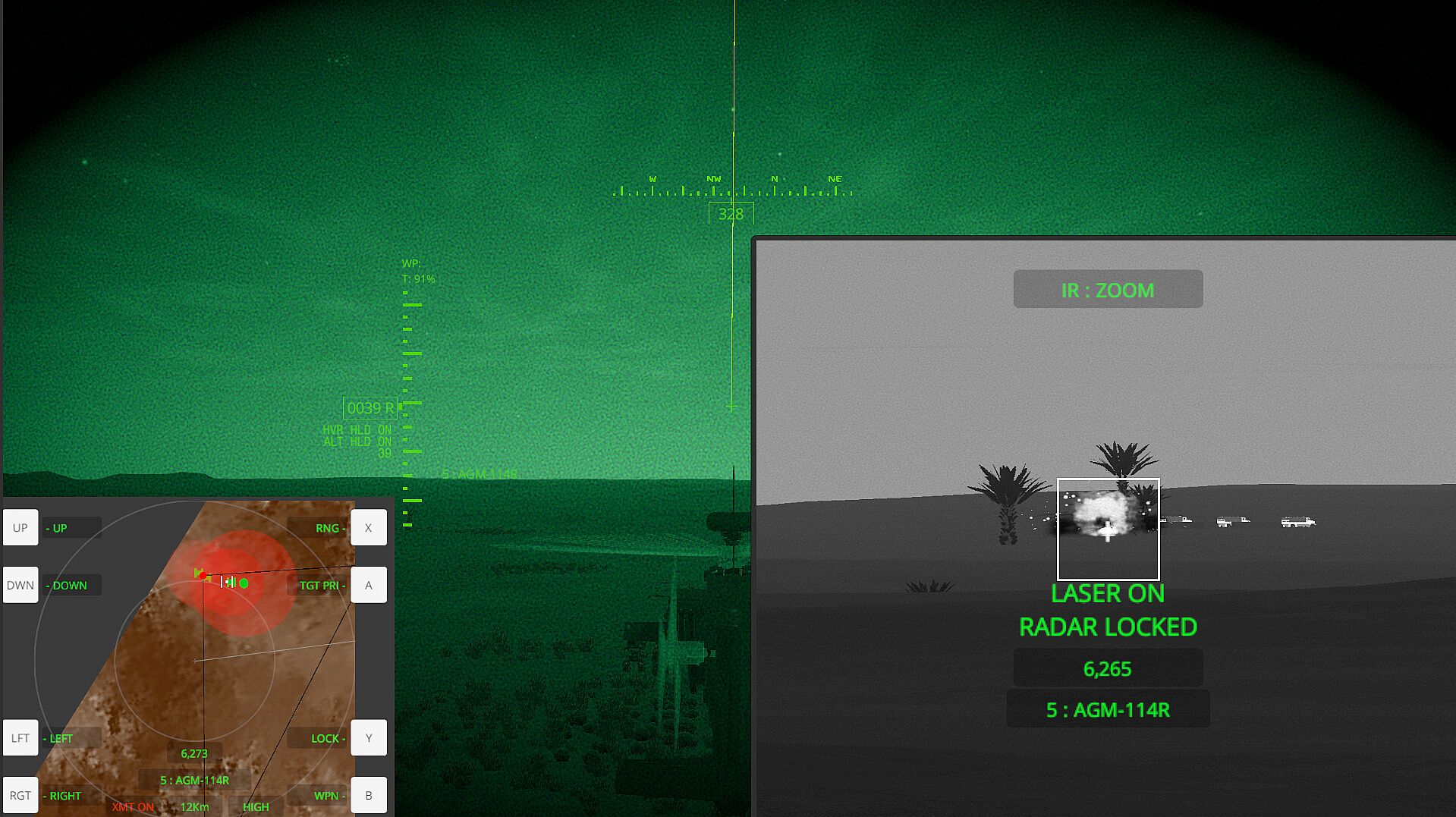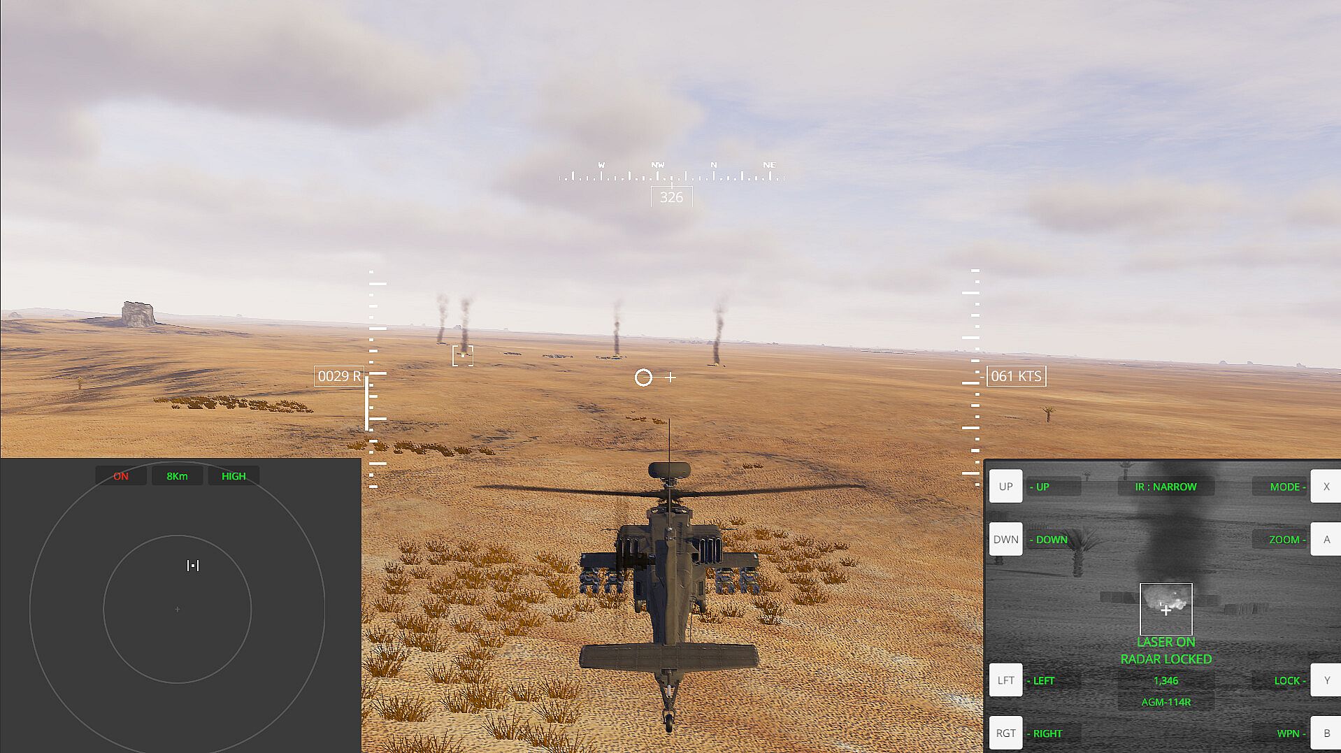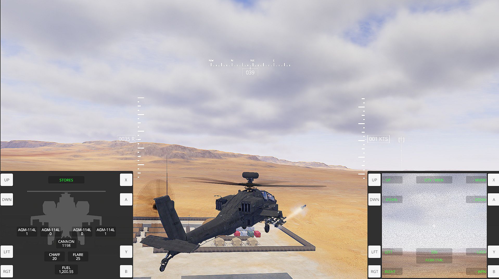 A slight departure from reality is that you, the pilot, will be in direct control of designating targets and firing weapons even in helicopters that have co-pilot/gunner positions. Your CP/G will aid in target identification and spotting targets visually.
