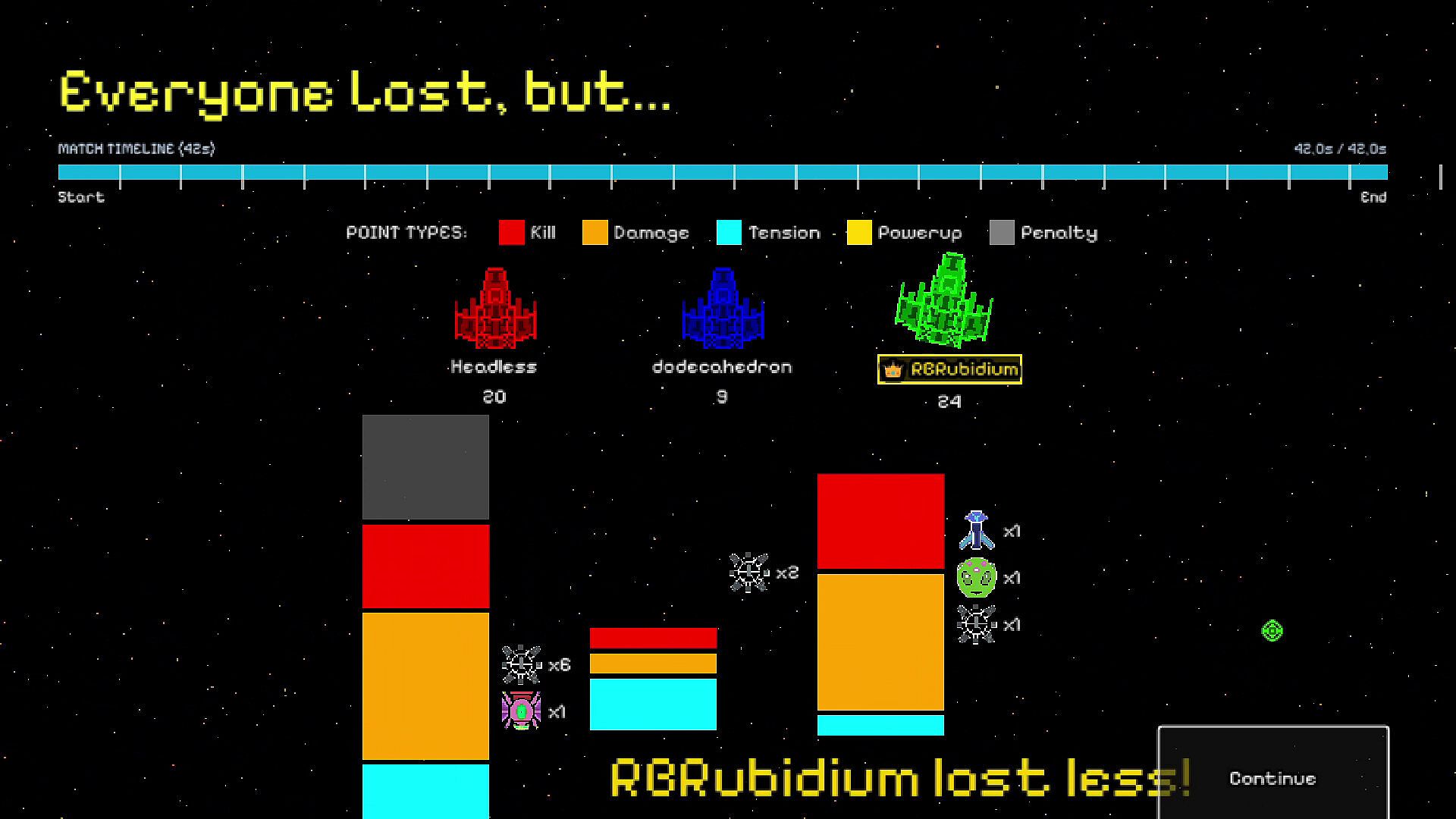Your main objective is to survive long enough to finish the arenas, so you might choose to cooperate, but remember: you also want to score better (win more!) than your friends! Don't tell anyone I said that, but I heard there're tons of strategies like throwing yourself in front of their shot, so they can get a penalty or killing them on purpose so they can't score anymore. Who would do such things? Not you, right?!
