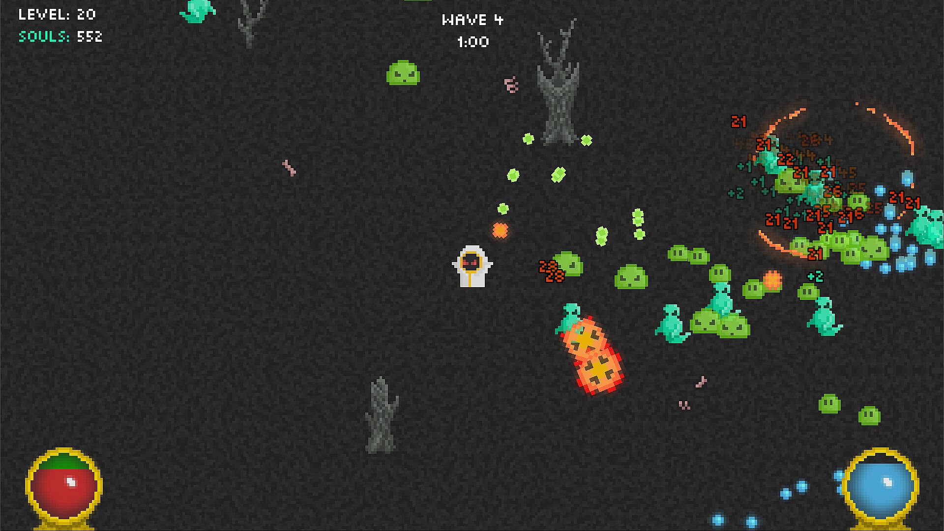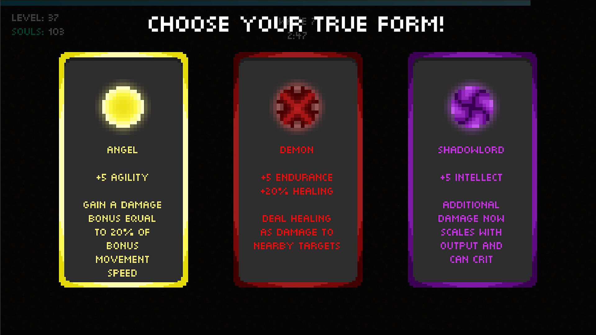 Hellborn: No Survivors is a unique take on the survivors-like/bullet heaven genre. Take on waves of enemies to find and collect powerful relics, with a chance to get rare relics with game-changing effects from elite opponents. Level up as you kill enemies and evolve your attacks when they reach a threshold. Use attribute points to strengthen your base stats and spend souls to upgrade your relics or craft new ones. Evolve into your true form to take on even stronger enemies in act 2. But be careful, as stronger enemies inflict wither upon you, which consumes you slowly and is difficult to cure. Take on bosses with two phases and unique attacks at the end of each act.