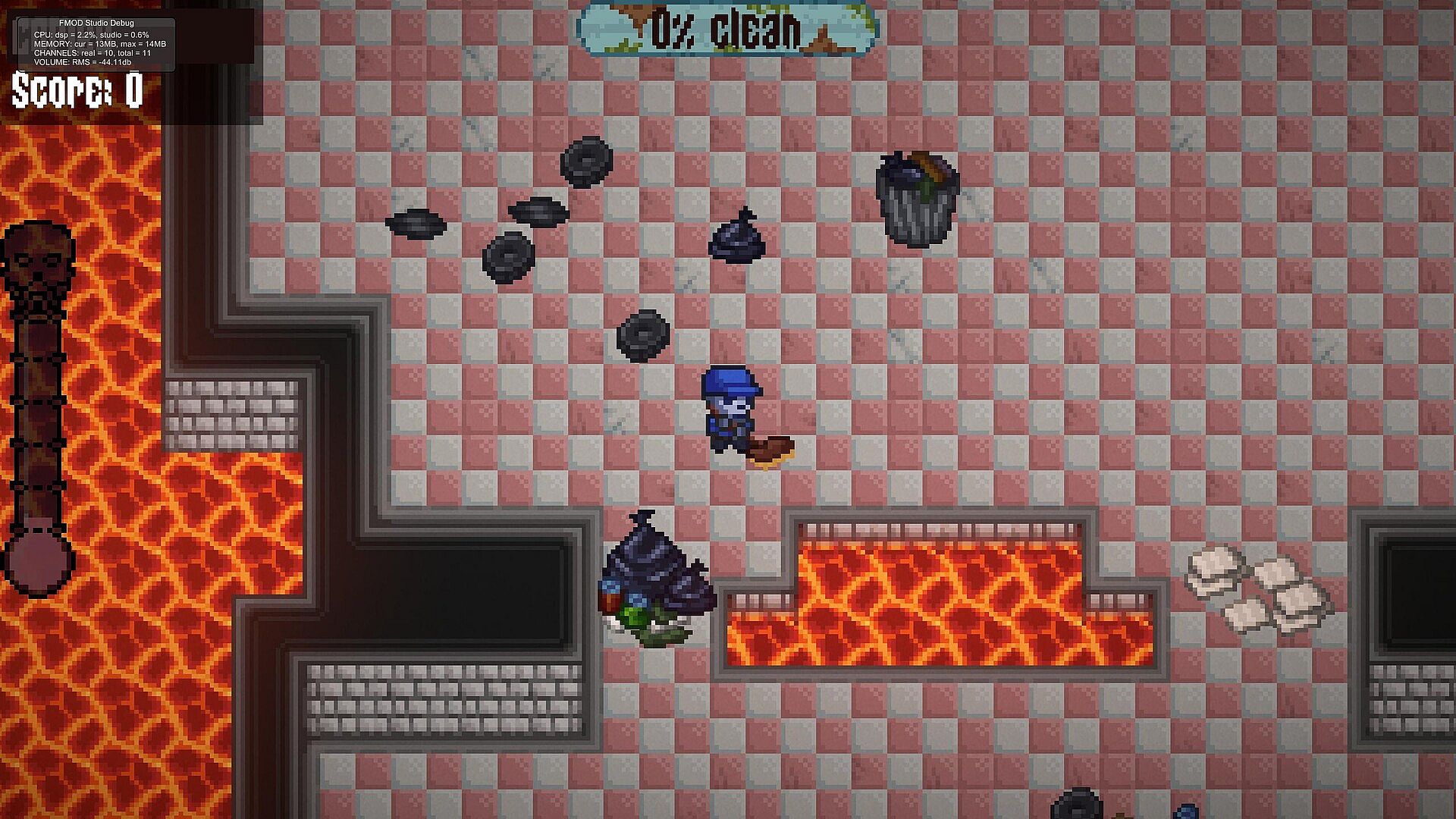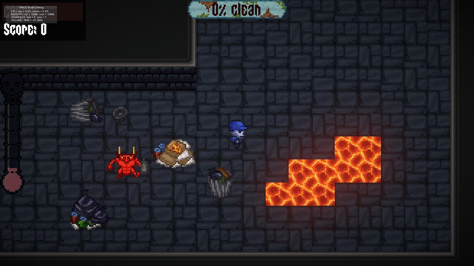 Hellish Scrub is a 2D top-down action-adventure where cleaning is combat and filth fights back. After falling through a pit in a disgusting bathroom stall, you’re dropped into a neglected underworld ruled by a depressed Devil who’s given up on the mess.