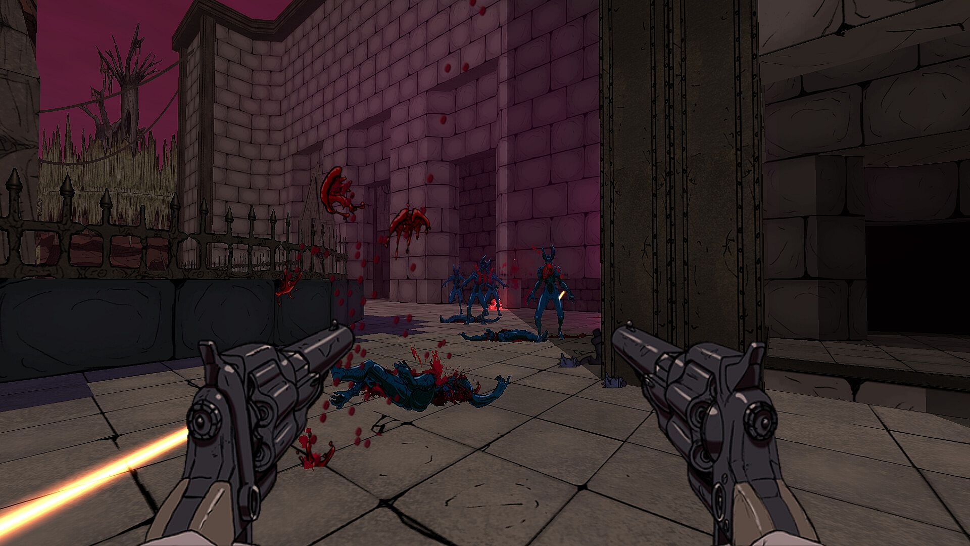 - A Brave New Hell: Explore an incredible vision of the underworld, with completely hand drawn animations, sprites, effects and textures combining both traditional and digital art, bringing a truly unique aesthetic to Hellslinger.