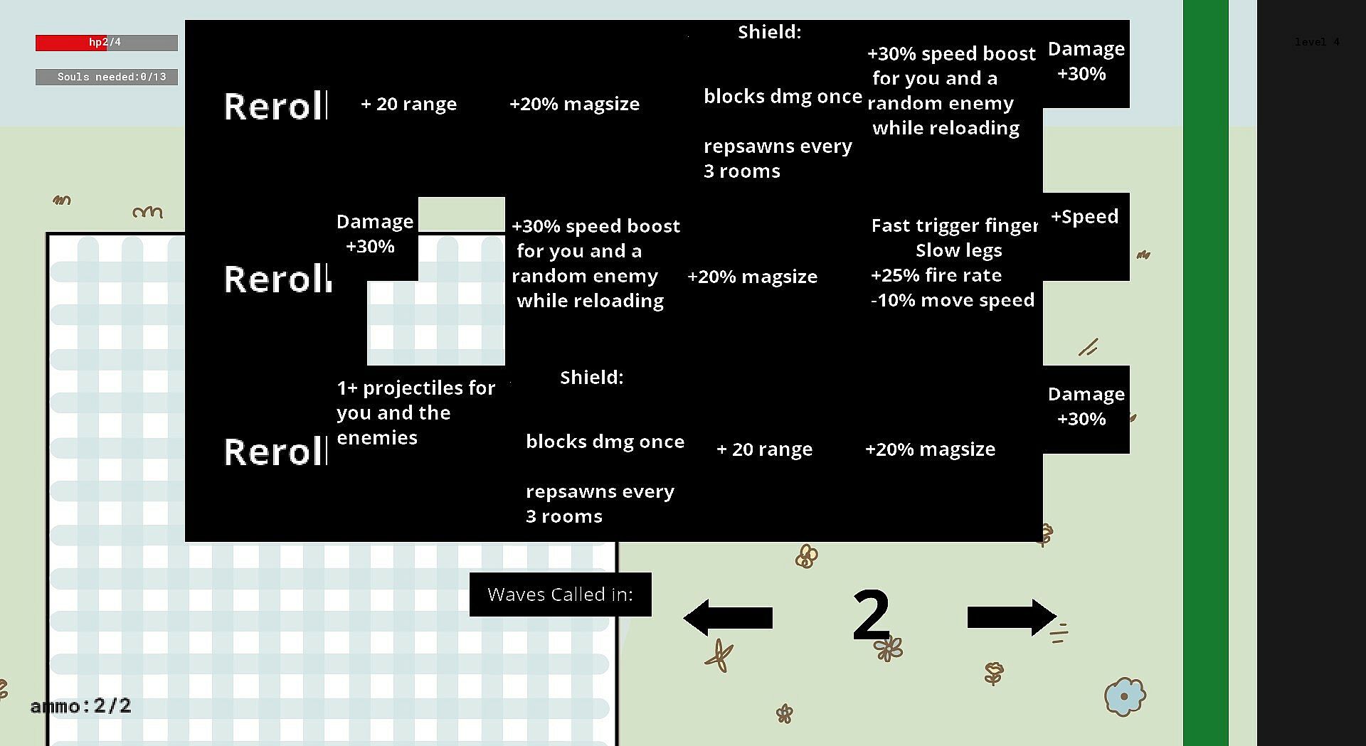 An upgrade might massively increase your fire rate while standing still but for every moment you stand still there is a very small chance of an anvil spawning above you to crush you or an unfortunate toddler. This game offers 70 unorthodox Faustian upgrades that offer plenty of unique playstyles and difficult choices.