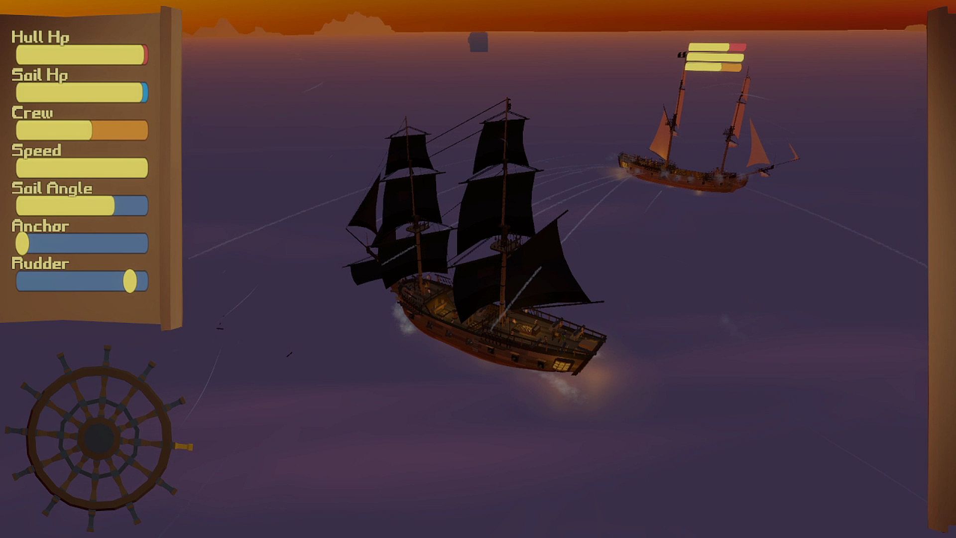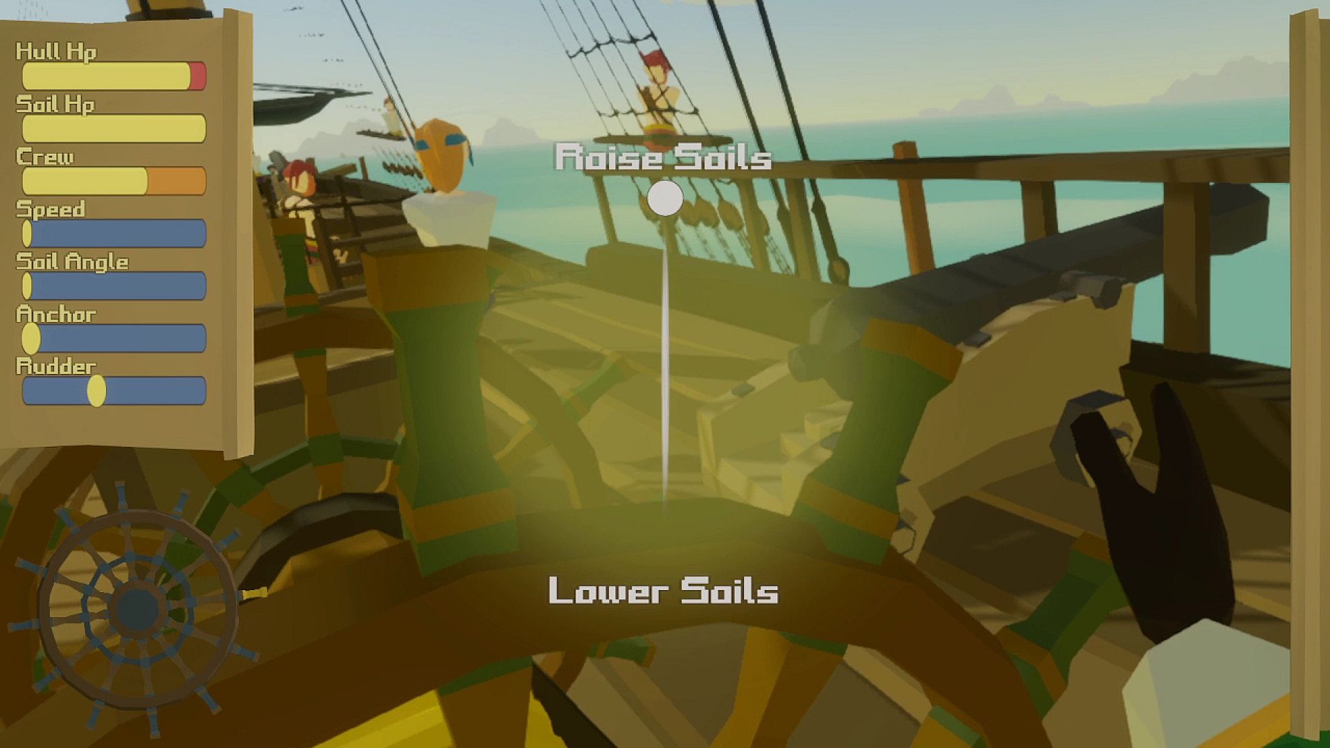 As the Crew (Keyboard or Gamepad), adjust the sails, allocate crew members, choose cannonball types, and relay important information about the map, enemies, and ship status to the Captain.
