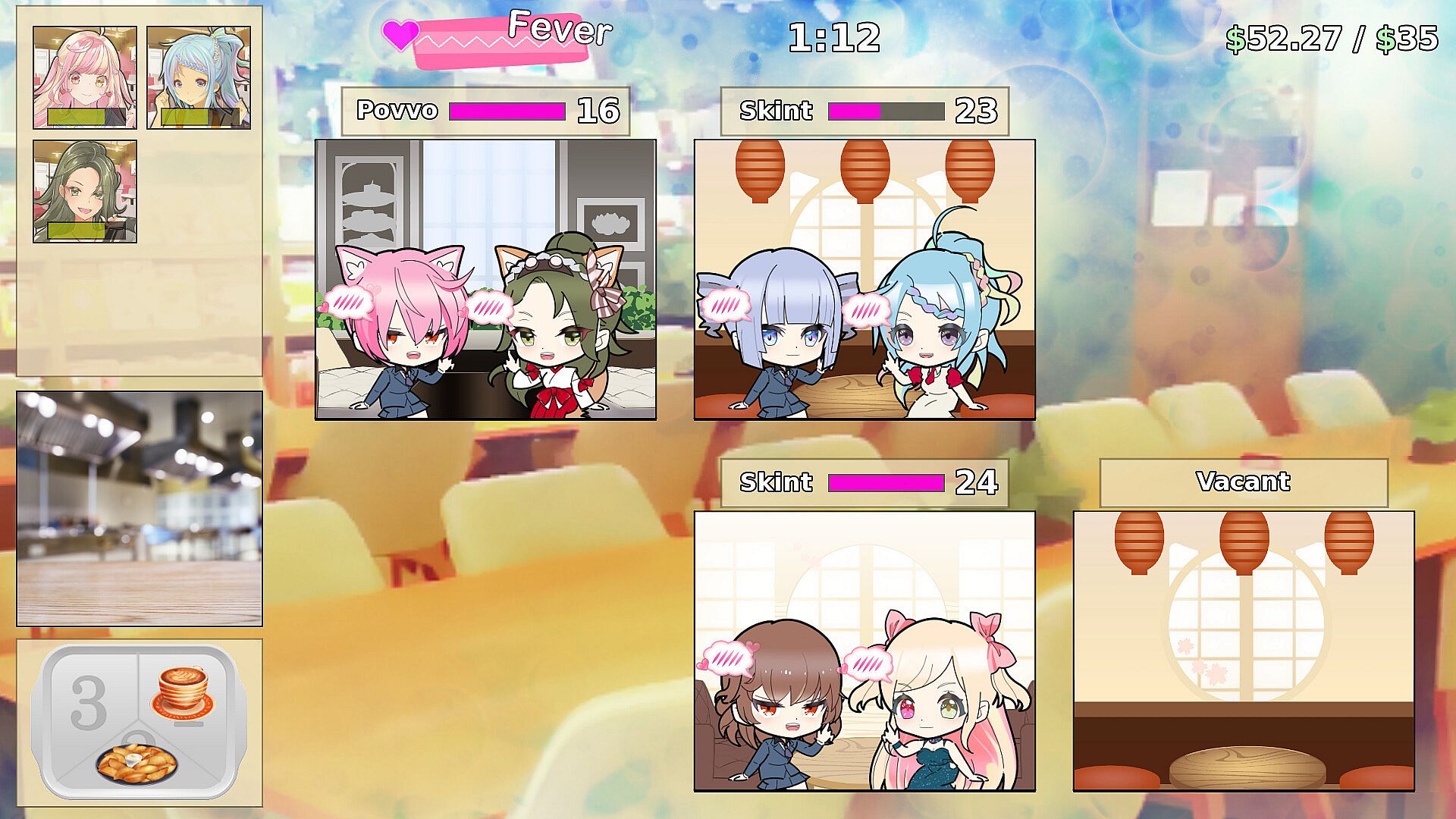 • Manage a Coffee Shrine franchise! Assign staff members to tables, renovate your store, and scour the city and complete bonus objectives to hire new characters to work at your store.
