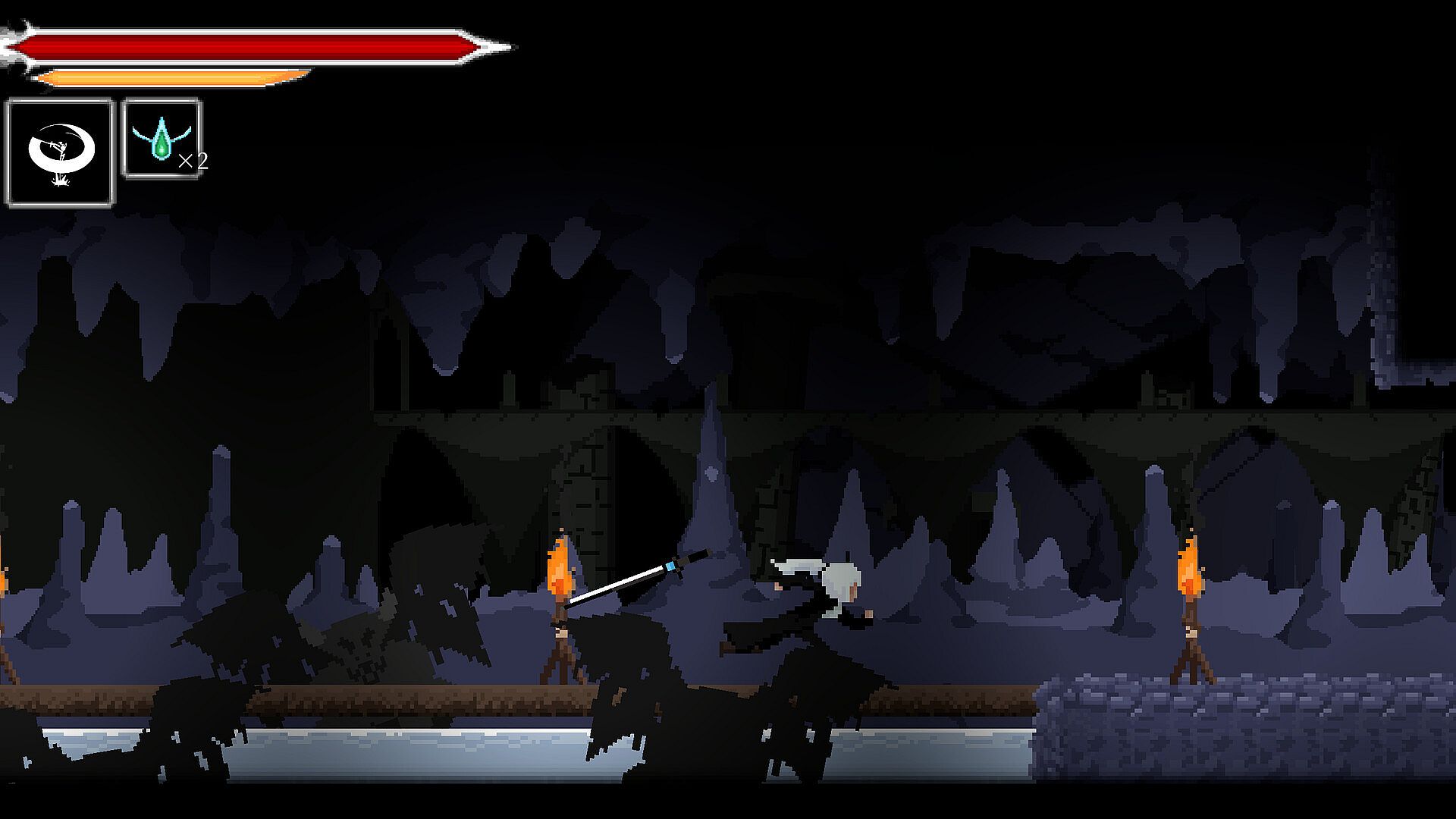 Meet the Hand-Drawn Pixel Art Dark Fantasy World : The world consists of vestiges that symbolize the glorious era. Slay Defileds that crave blood and violence and go foward.