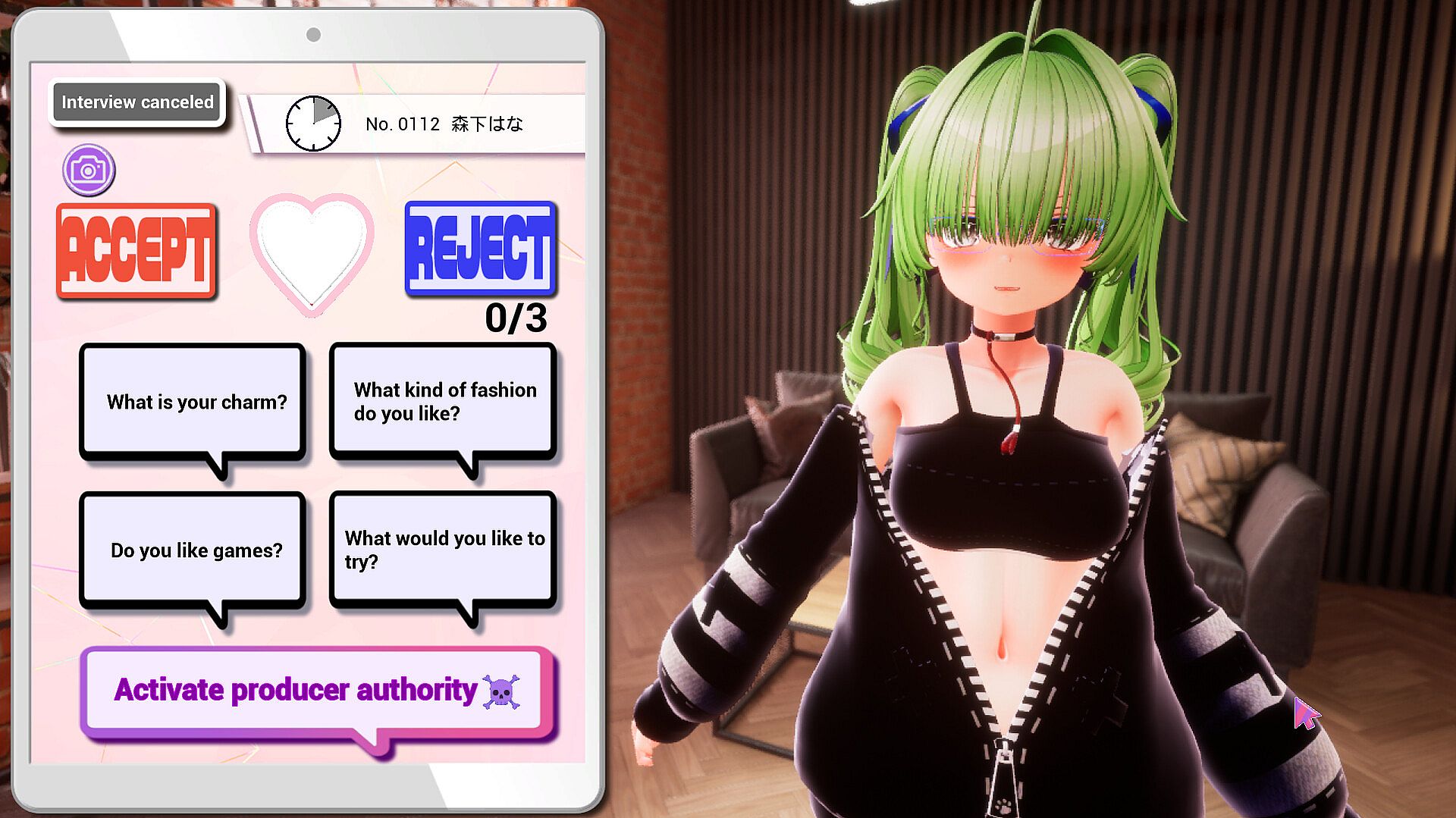 By repeating interviews and live performances, your manager level will increase and you will be able to give naughty instructions during interviews!