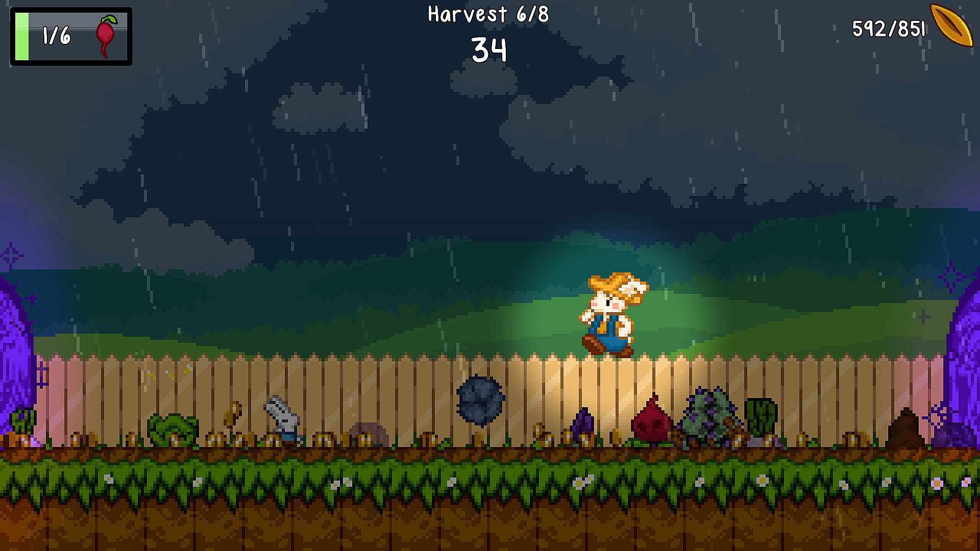 After meeting a strange wizard in the woods, his garden has become enchanted! The plants grow extremely fast now! However, if he does not collect them in time they will rot away, creating harmful creatures resembling the vegetables he was growing.