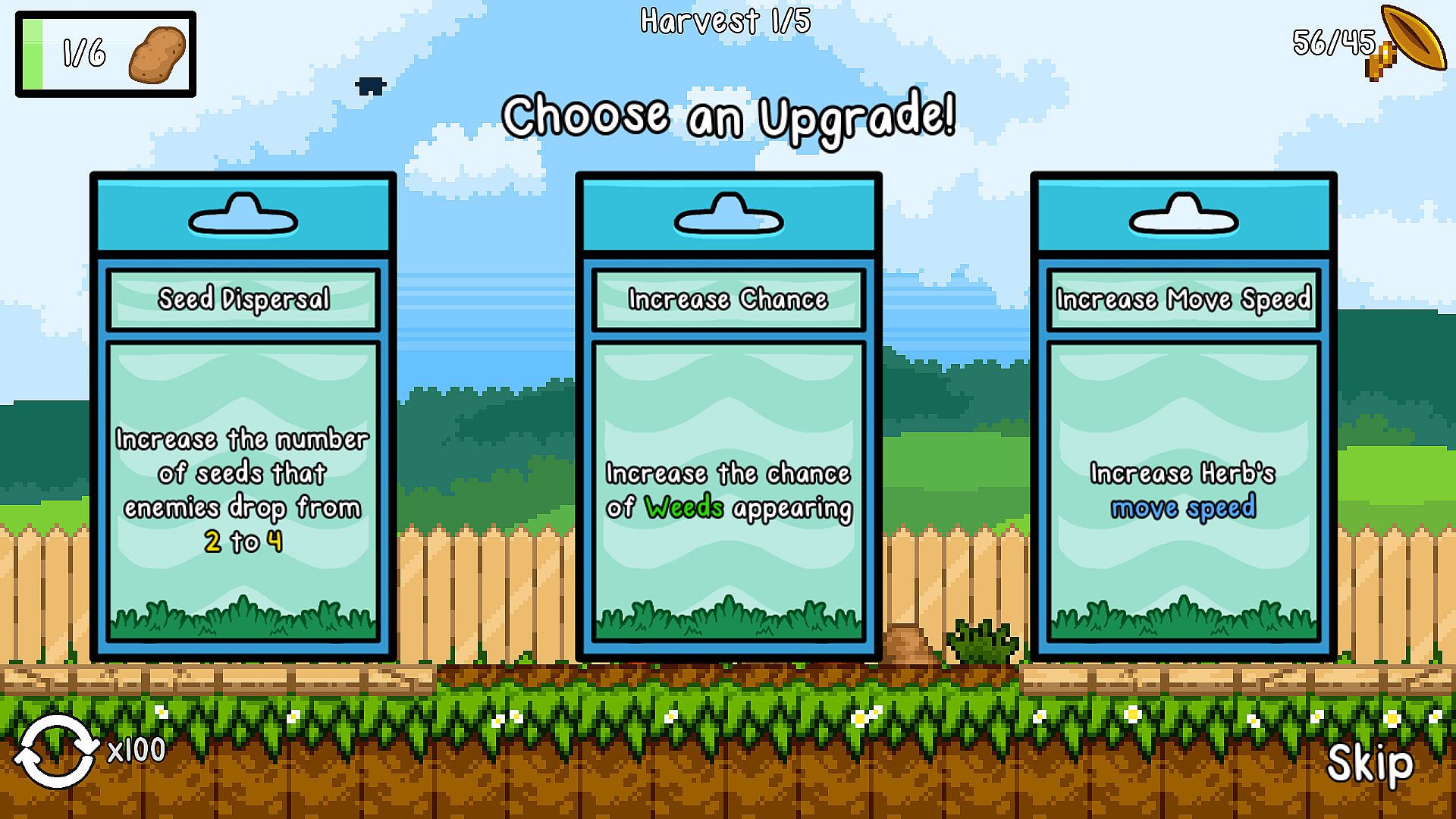 Pick from a total of 40 upgrades as you progress through each Harvest to help increase your chances of making it to the end!