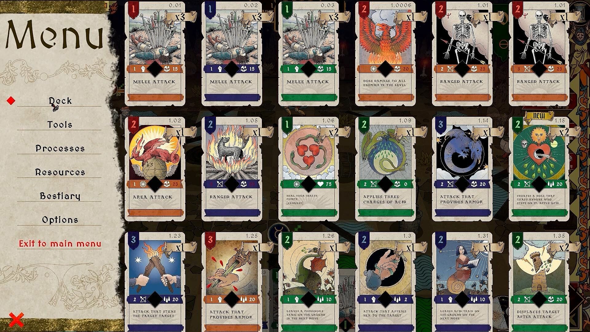 Hermetica is a roguelike turn-based card game. Players start with a basic set of cards and must build their perfect deck, upgrade it by practicing Alchemy and use it to defeat mythical beasts and powerful enemies. Each card collected opens new opportunities in combat.