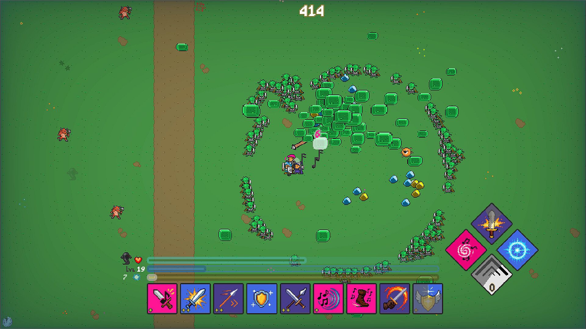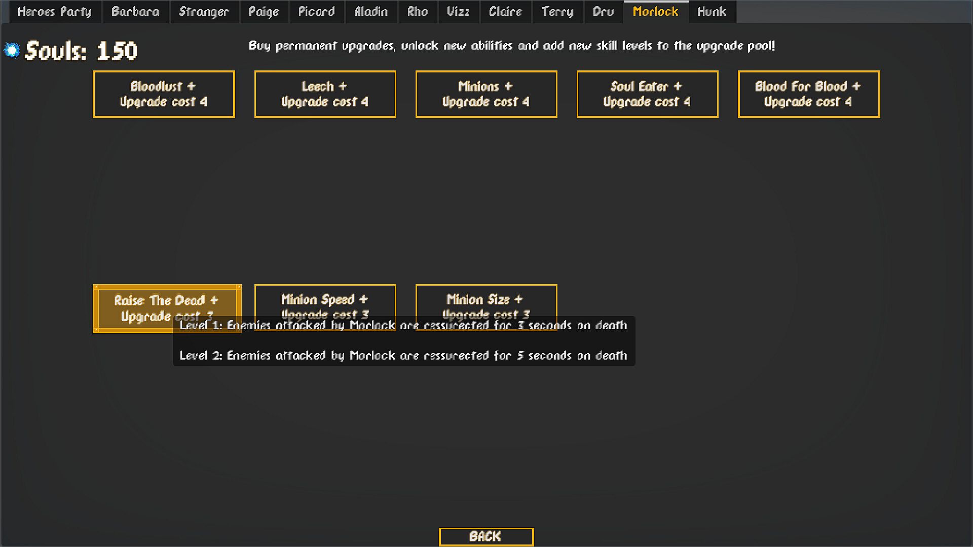 Each hero can have only three skills per run - so choose your abilities carefully! Once a hero has acquired three skills, the ultimate skill is unlocked for that hero which has longer cooldown than regular skills, but is much more powerful and devastating and can help you survive tough situations.