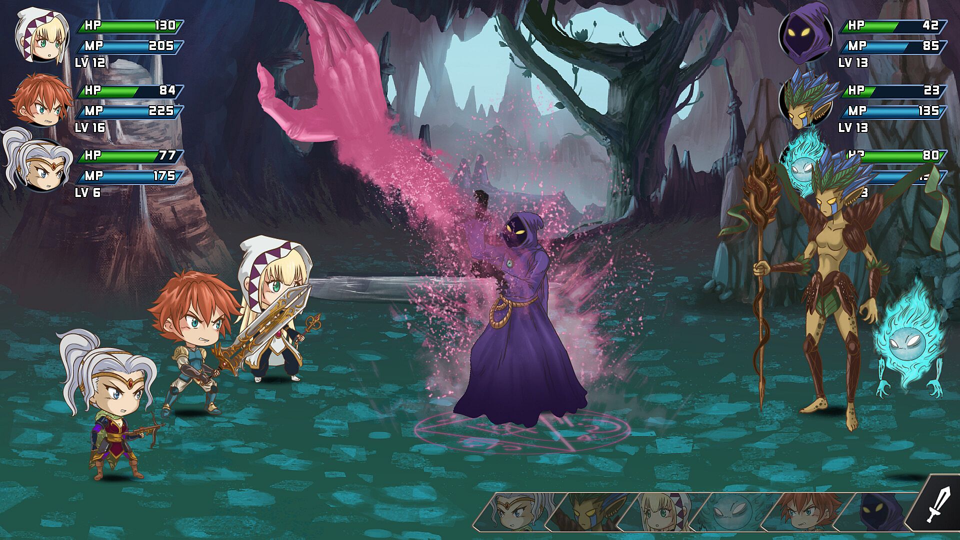 - Turn-based combat with dozens of skills and spells to train and upgrade