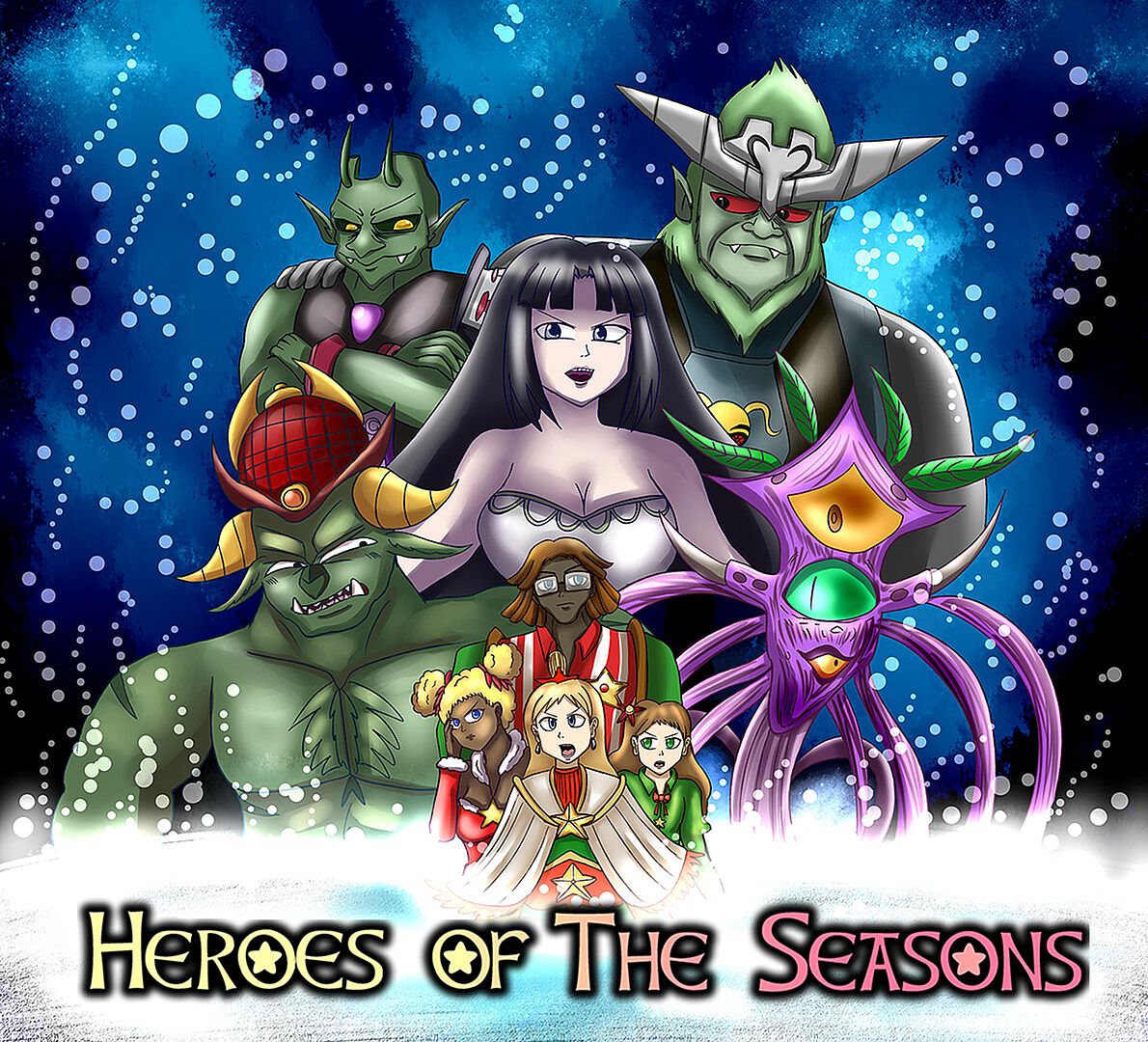 Heroes of the Seasons is a Boss-Rush Turn-Based RPG with Visual Novel Styled storytelling. Hire 3 Mercenaries and protect Christmas with all your might!