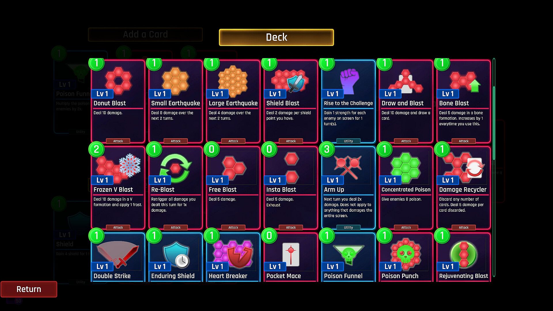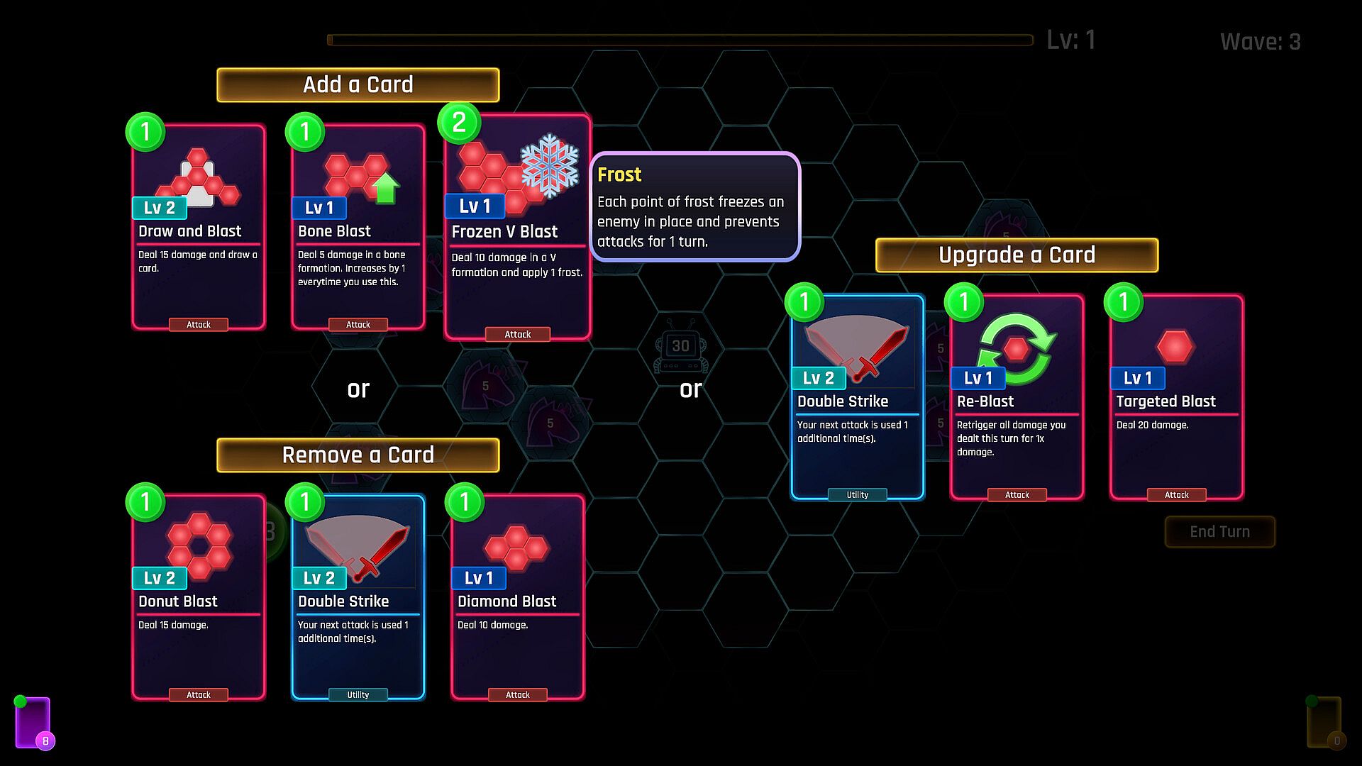 Hex Blast is a horde survival x roguelike deckbuilder where you strategize on a hex grid, chaining explosive card combos to wipe out cyber hordes.