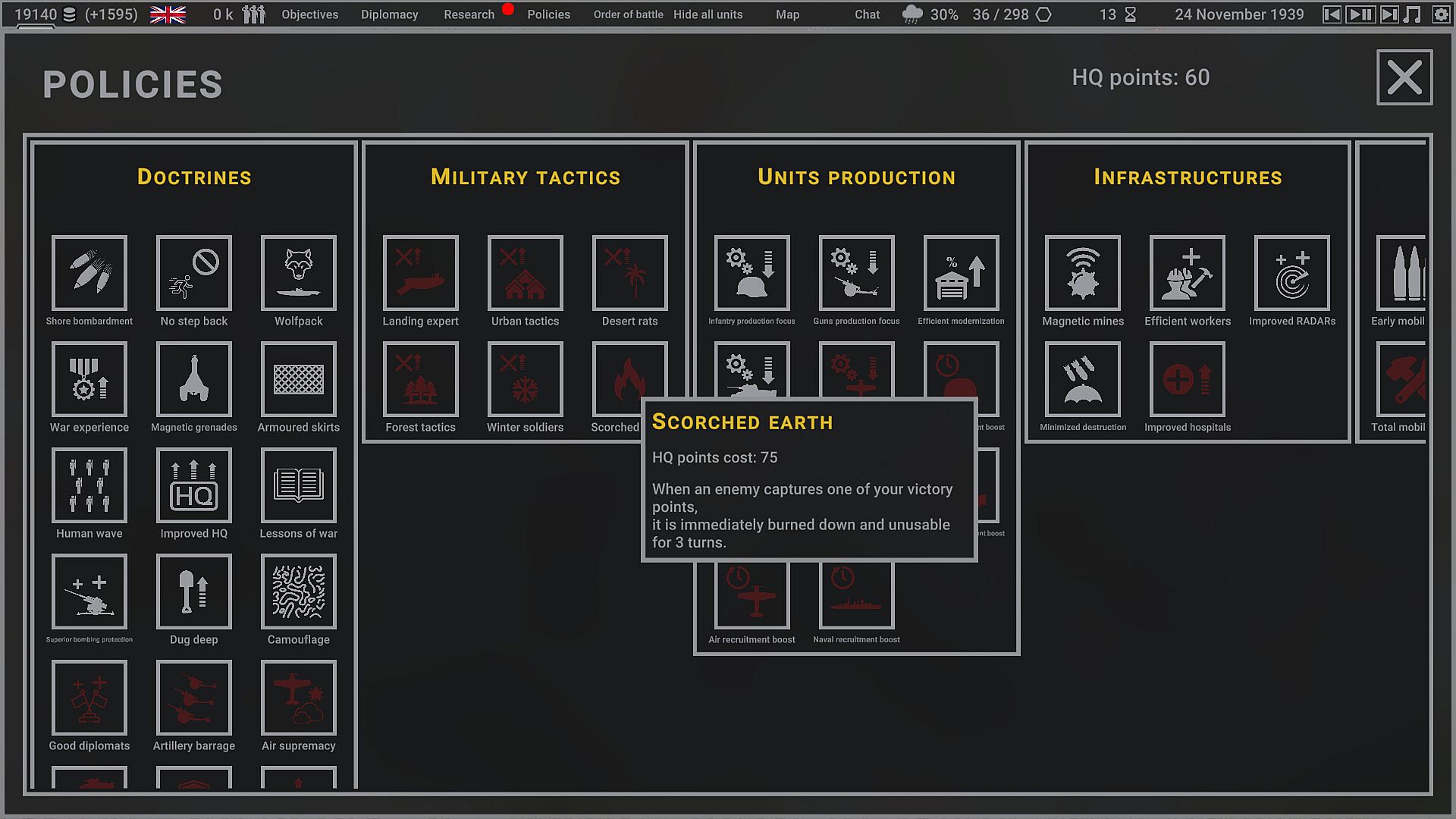 Playthrough Customization: Tailor your strategy with over 50 policies and doctrines, from military tactics to occupation strategies. Toggle optional settings like zone of control, realistic supplies, and fog of war to suit your style.