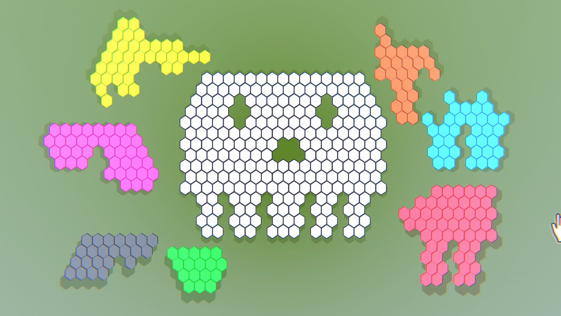 Varied hexagonal grids and puzzle shapes in each level