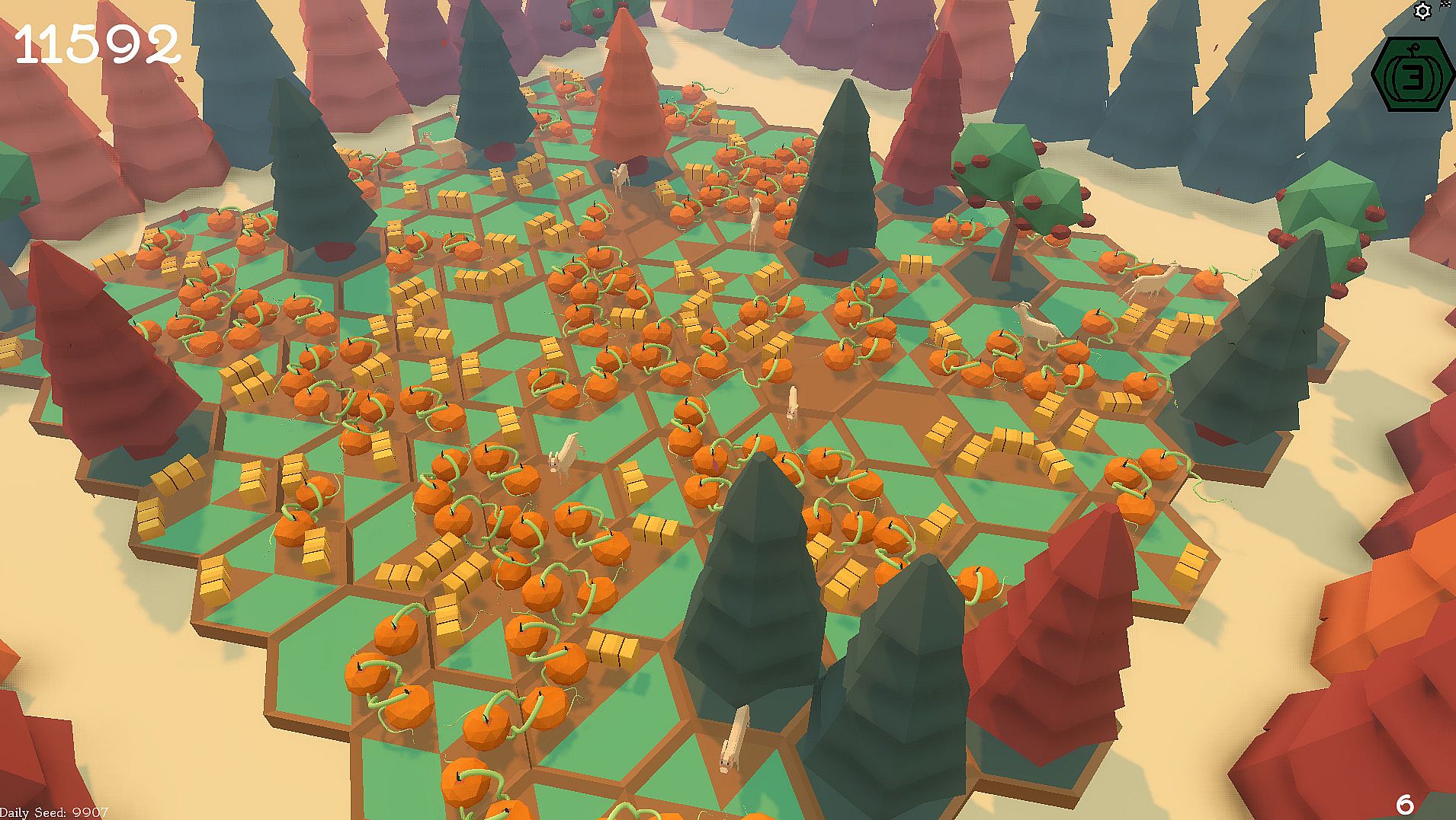 For those more strategically inclined, there is definitely some strategy involved with maximizing points. I've added dailies and a mutliplayer scoreboard if you want to show the rest of the community your sweet score in Hexagourds. But that's all up to you.