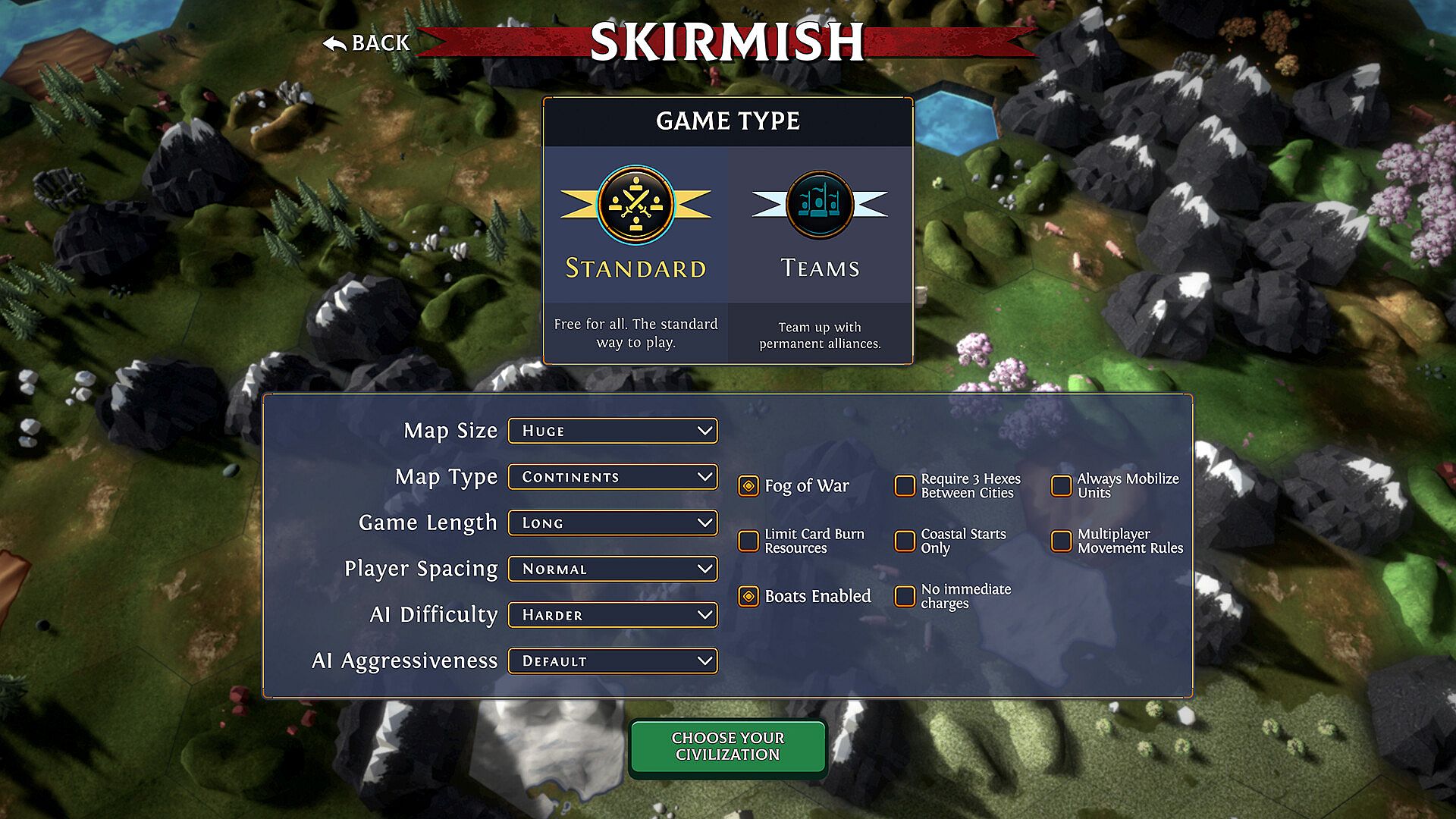 Singleplayer Skirmish – Choose the map type, game length, player spacing, AI difficulty, and more.