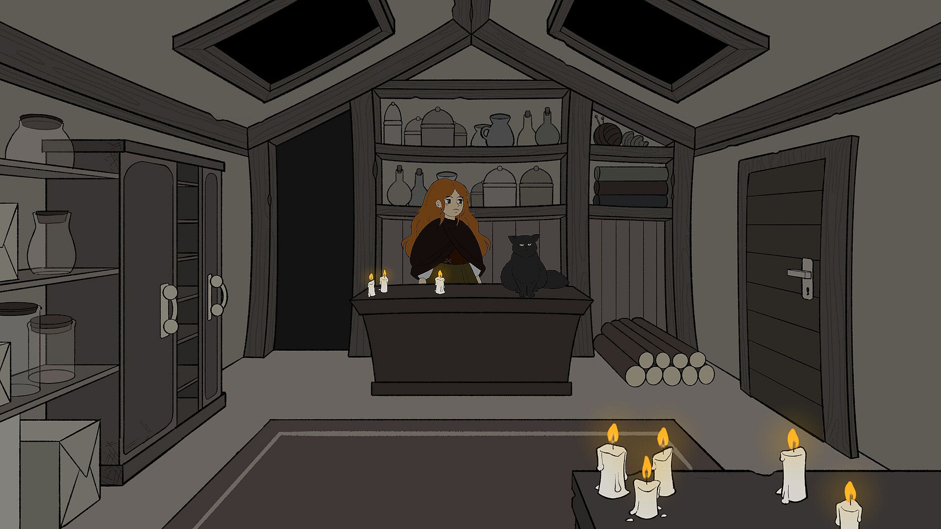 Hexed Time is a hand-drawn point-and-click puzzle adventure set in a quaint medieval village. You play as Amelia, a seemingly ordinary grocer who lives among the village folk—though her simple life hides a powerful secret. Amelia is a witch, skilled in casting spells and brewing potions.