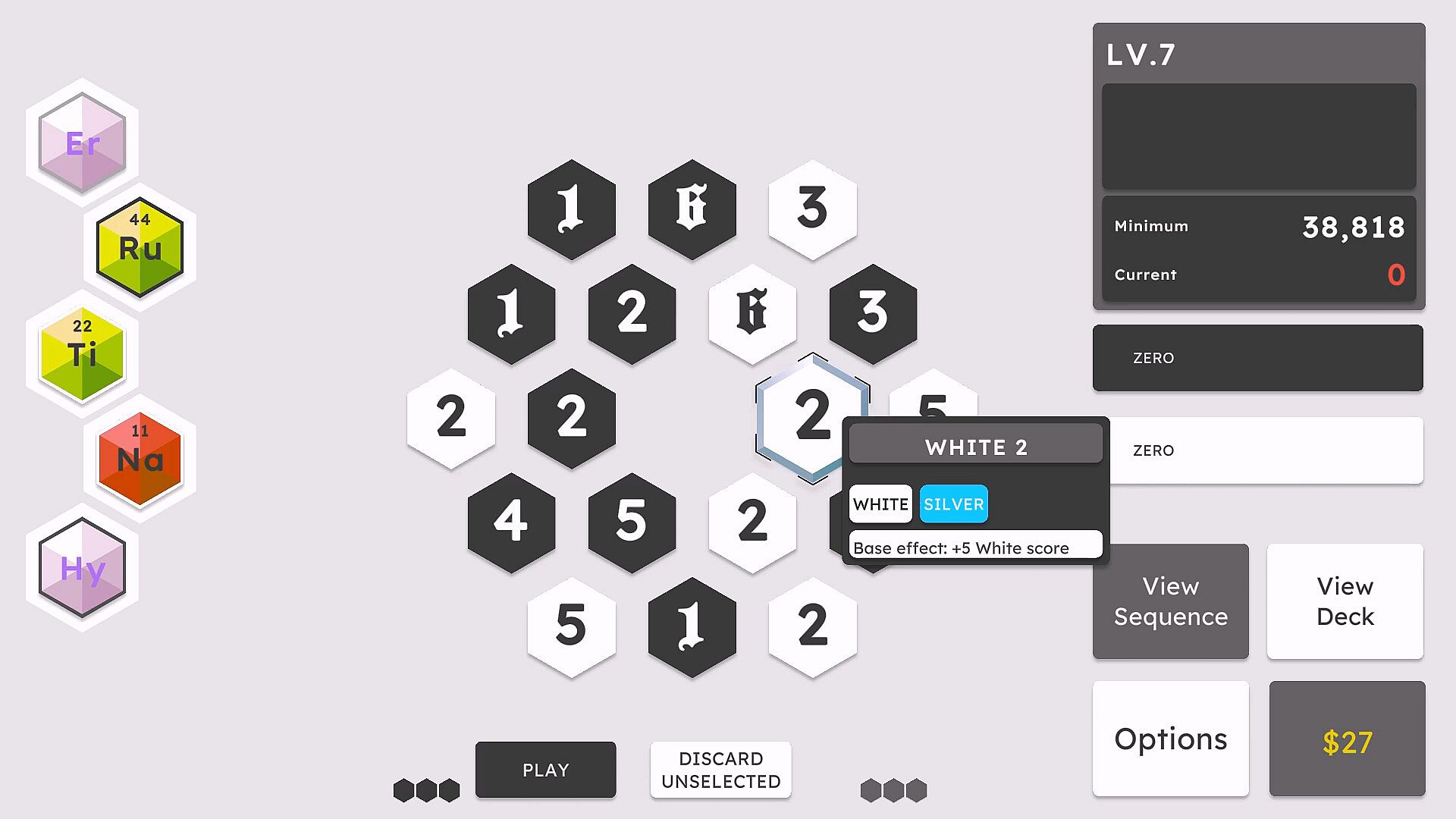 Welcome to Hexeract, a unique roguelike deck-building game on hexagonal tiles. Enhance number tiles, collect special elements, and select the sequence. Explore how you can maximize the synergy in outrageous level.