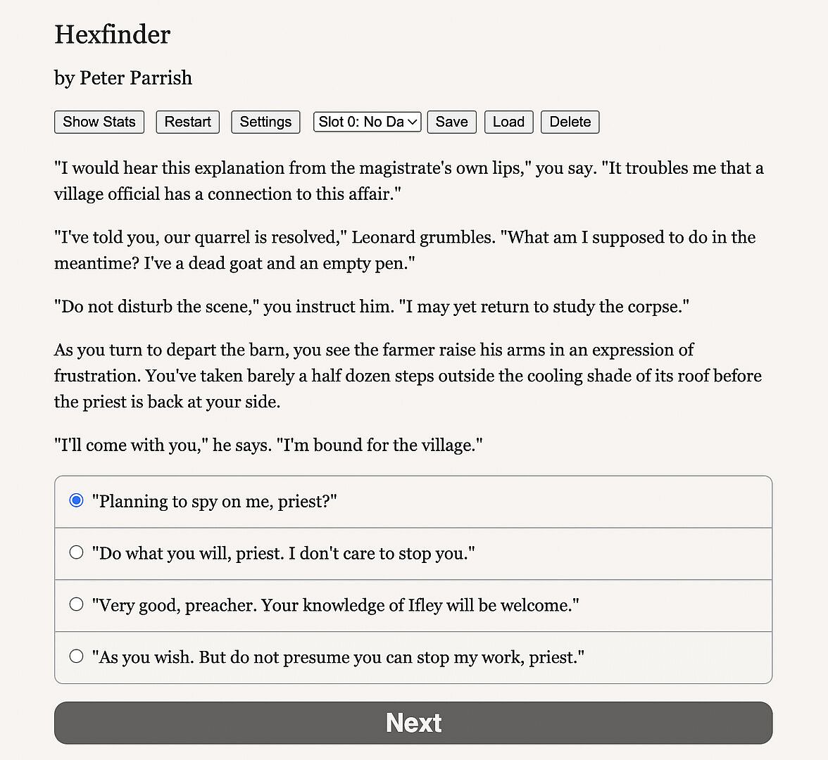 A story-rich, text-based RPG, Hexfinder is a supernatural alt-historical adventure!