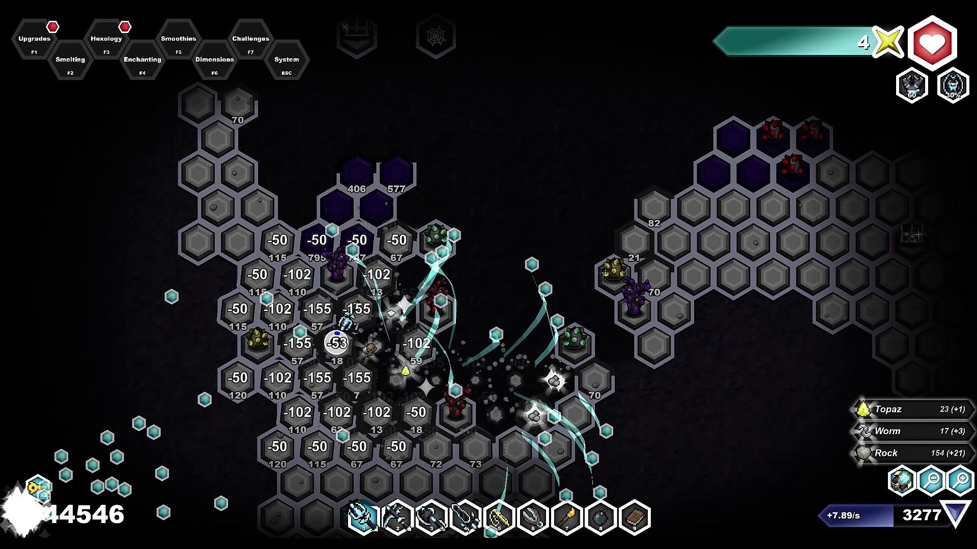 Every hex, object, and monster you destroy earns you hEXP and raw materials, which in turn can be used to upgrade your tools and abilities, leading to quicker and more wide-spread excavation!
