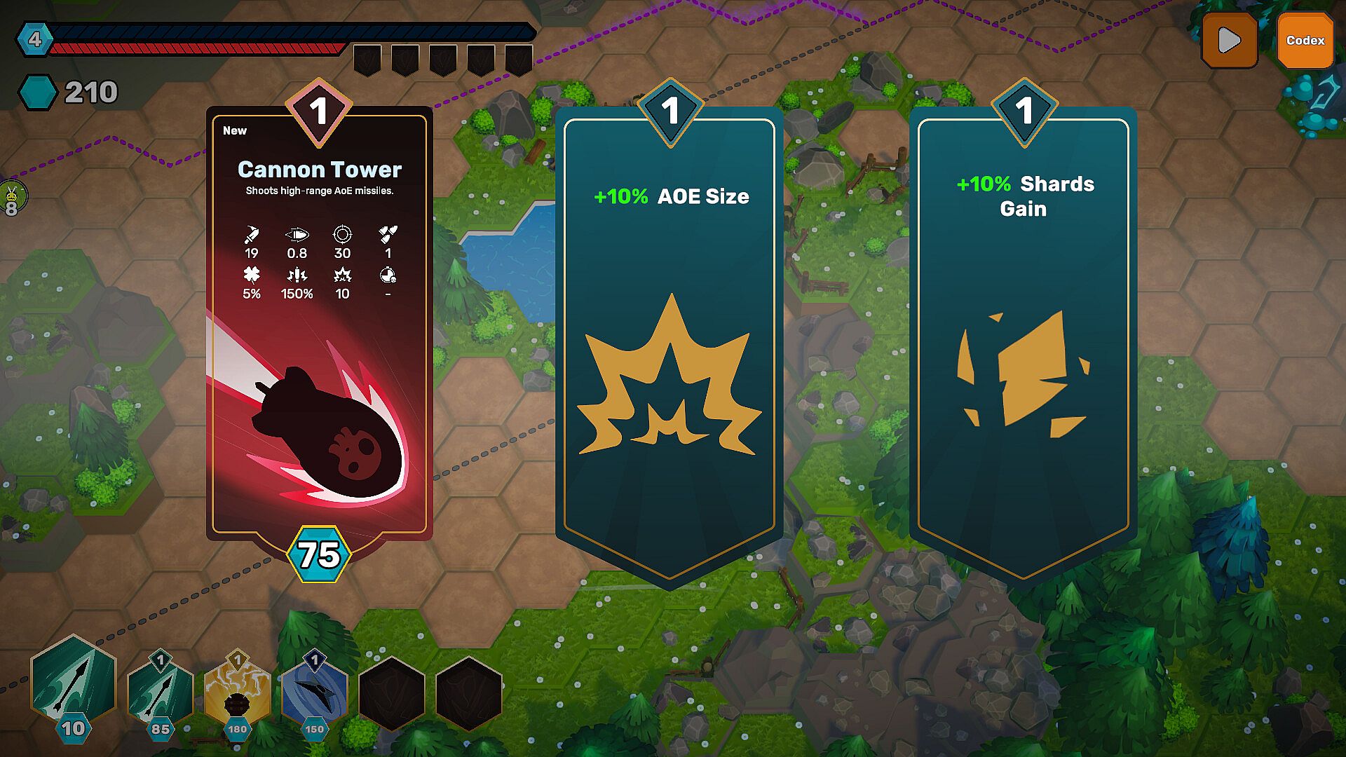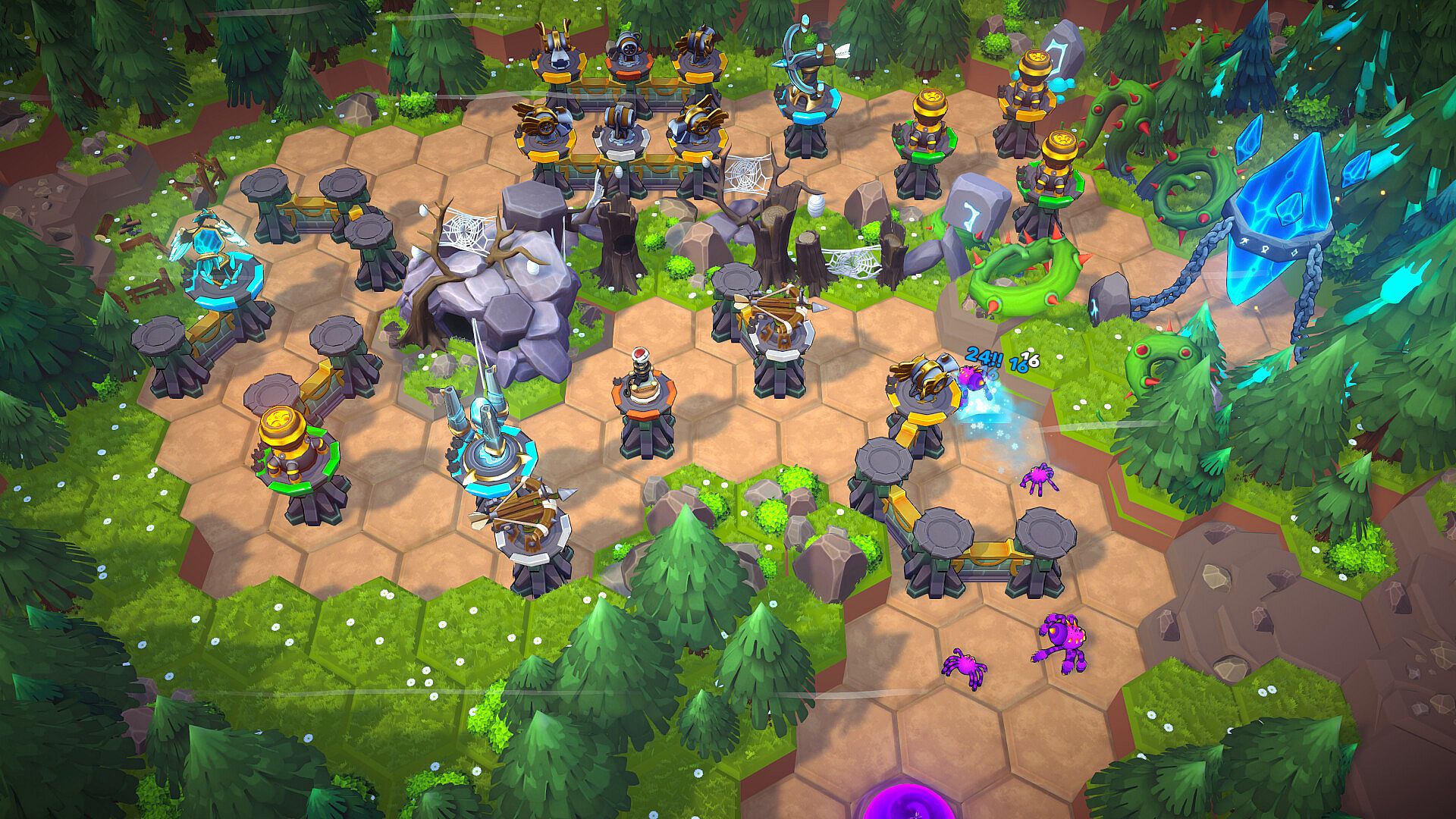 Settle into a living board game. Release shackled crystals and expand your collection, discover Gems and master Relics that change how every turn plays. Combine items, choose and upgrade towers, sculpt paths with walls and save Hextalia.
