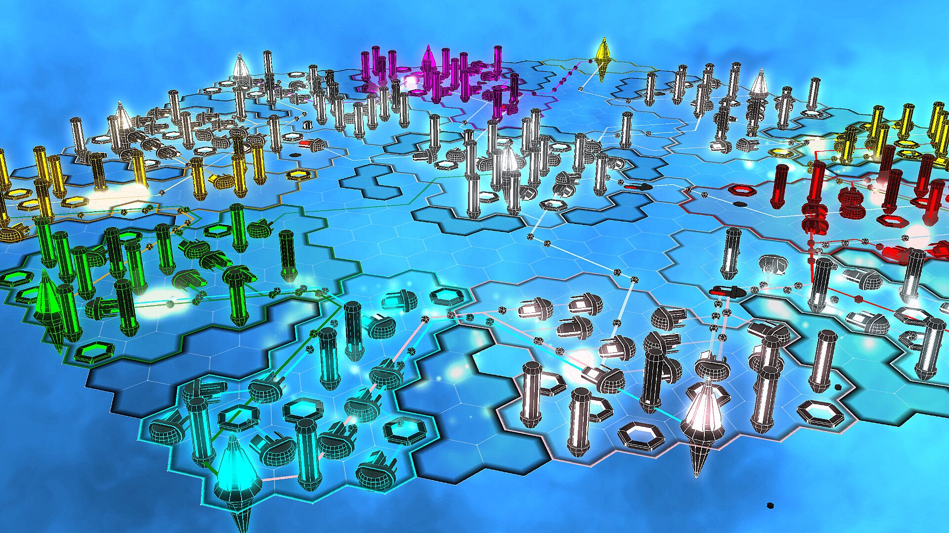 The basic gameplay is simple. You start with your main building which will generate a little but steady income of credits. Mines will generate you more credits quicker, but you also have to buy defense and attack towers to engage or protect yourself from the other players on the board. The main building of each player has 5 hitpoints, while every other building will be destroyed by the first hit. The last player with his main building still on the board wins the round.