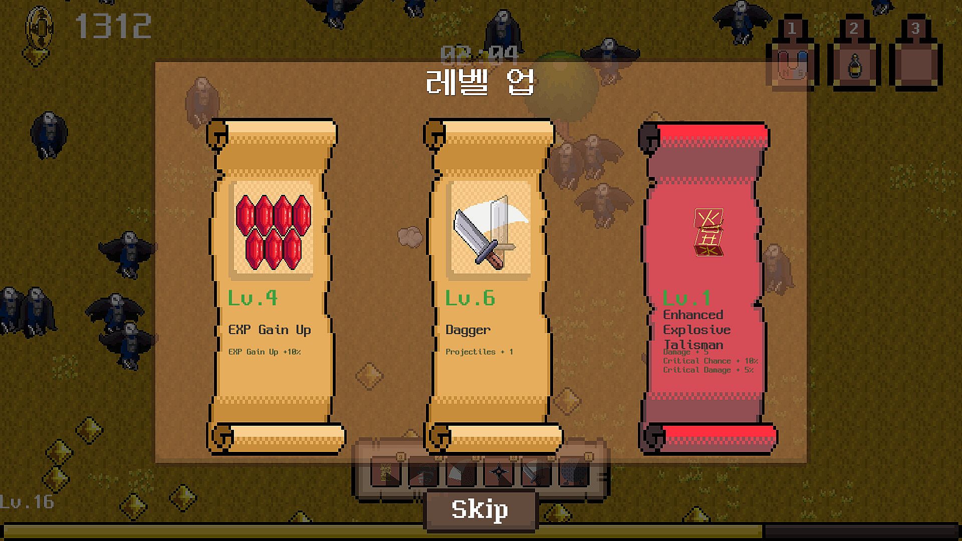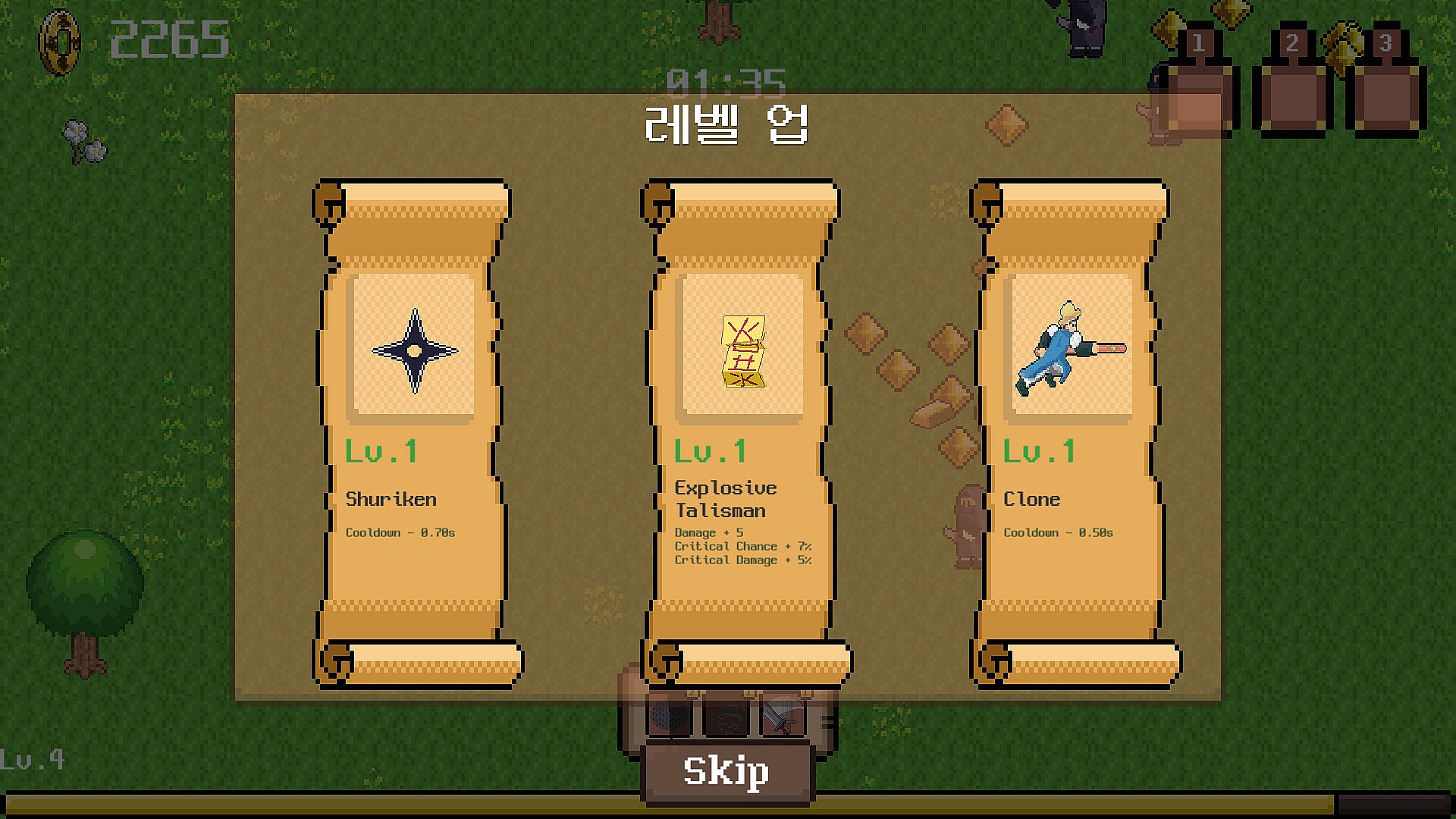 Play HGD, a character from the Joseon Dynasty, level up, pick a variety of skills to kill your enemies and survive.