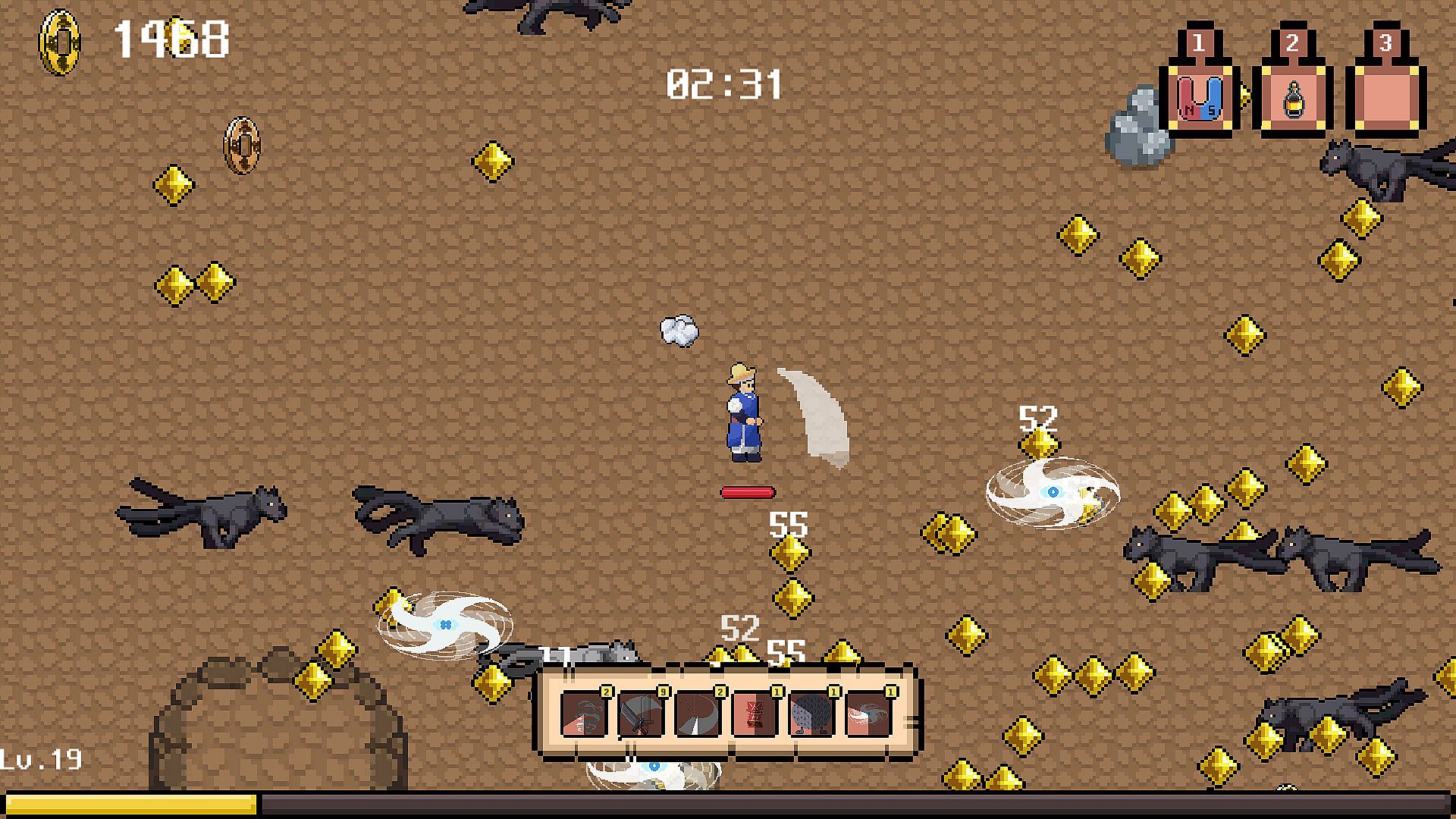 Collect gold to buy and use items at the store.