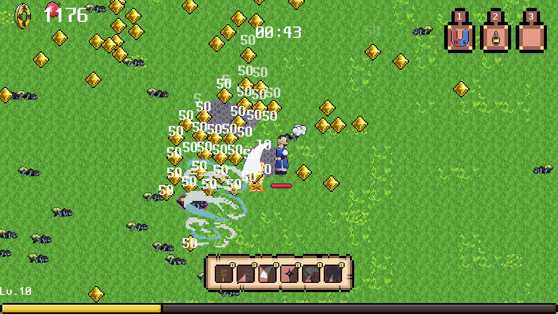 HGD SURVIVOR is a log-like-based game that survives in a set time and grows by eliminating enemies.