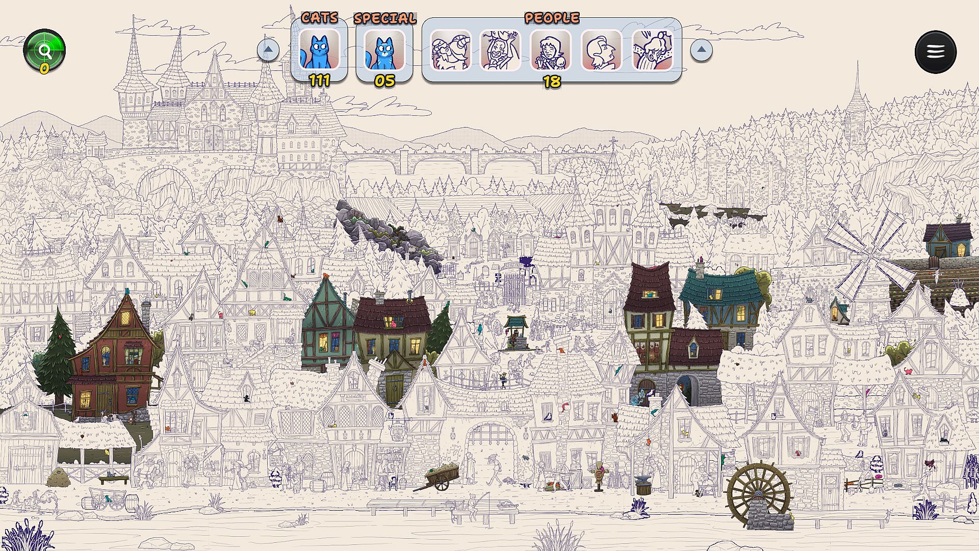 In Hidden Cats in Spooky Village, each stage begins in shades of grey. As you find hidden kittens and characters, the world comes alive with color, revealing intricate details and spooky surprises.