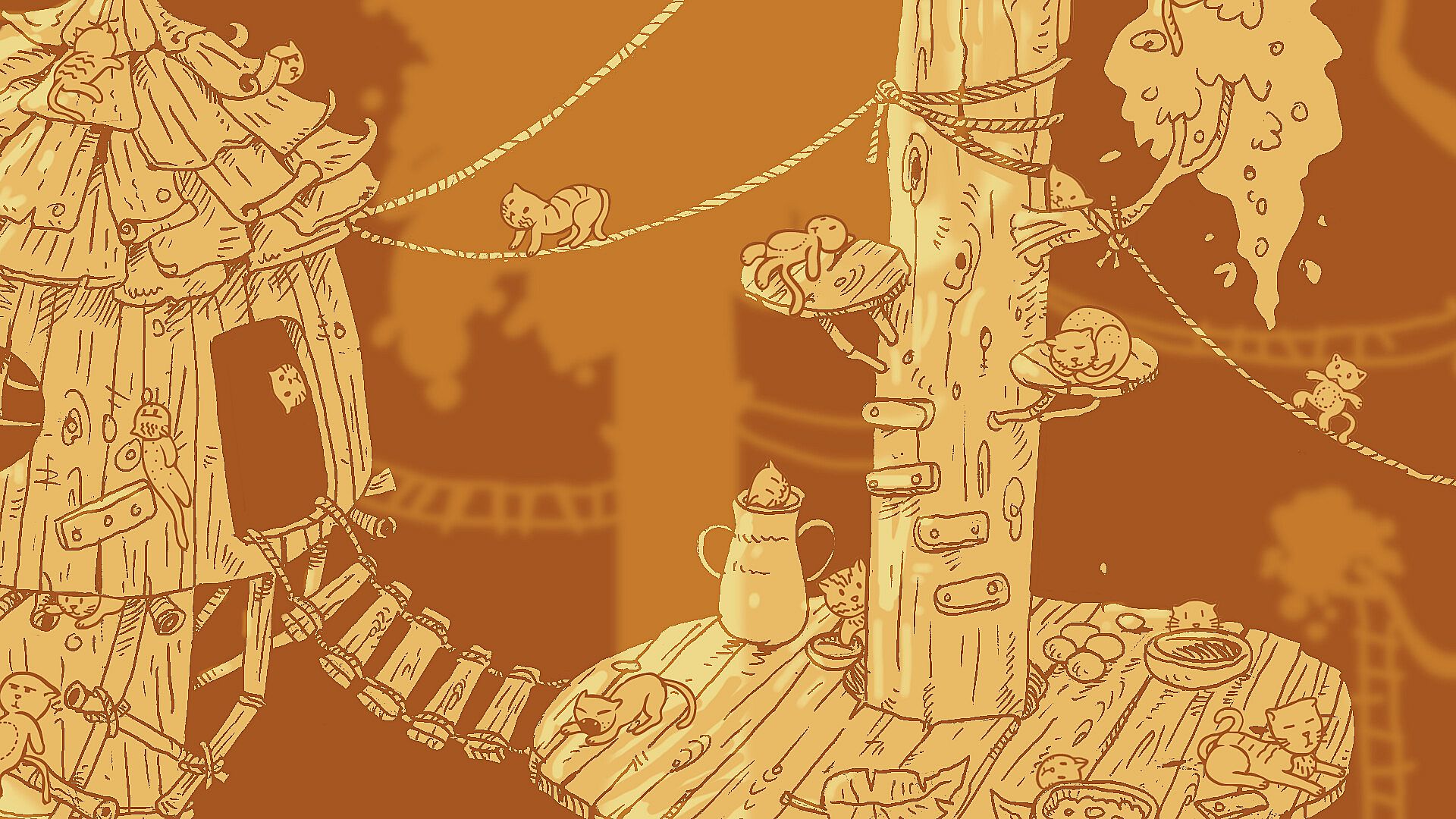 Welcome to the treehouse village inhabited by cats and pandas.