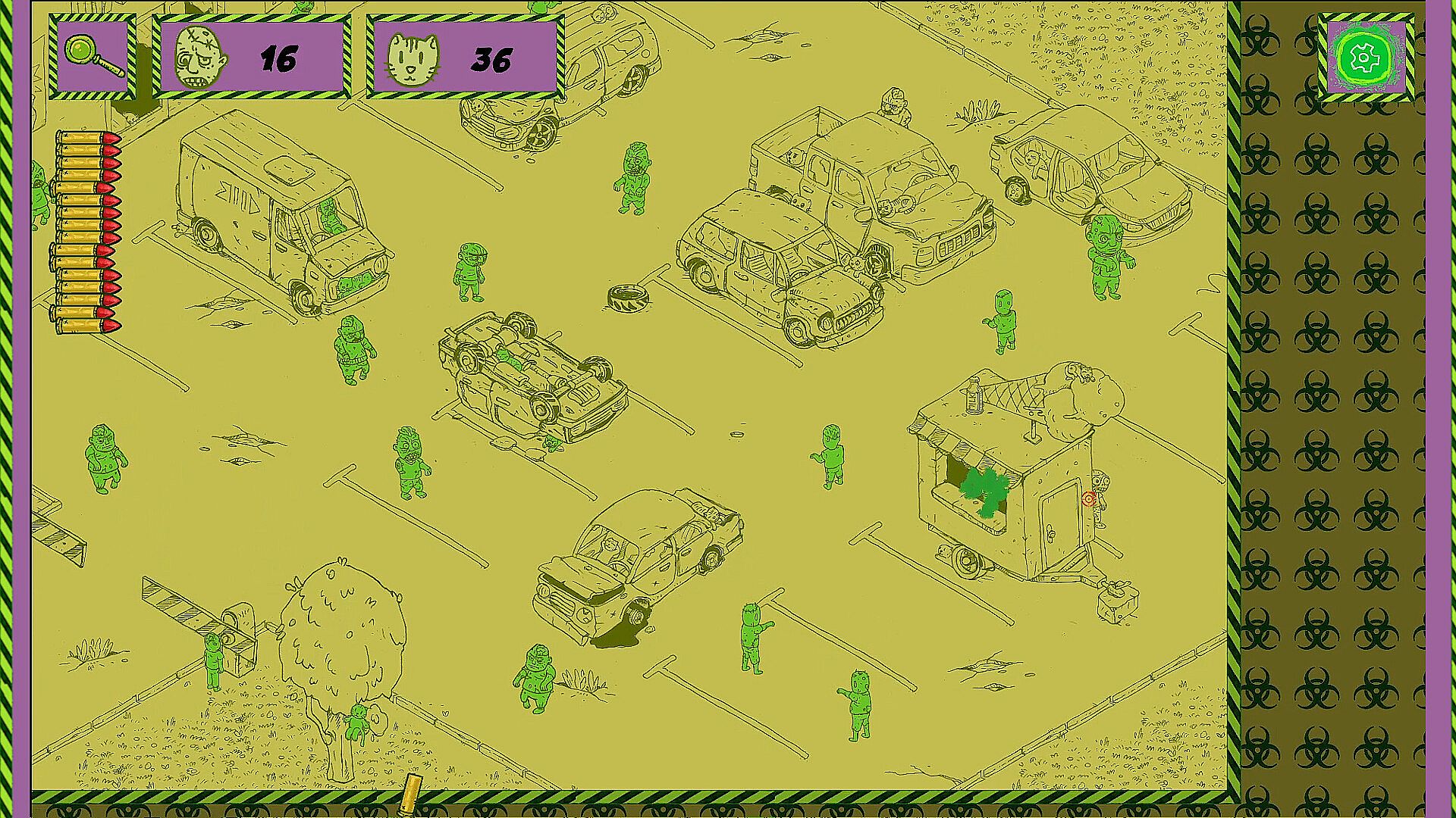 You are the last survivor, once a member of an elite cat sniper unit. The cat army has dropped ammunition supplies – these can be found in wooden crates. Your mission is to eliminate all the zombies and rescue the cats. Go, cat soldier! Meow!