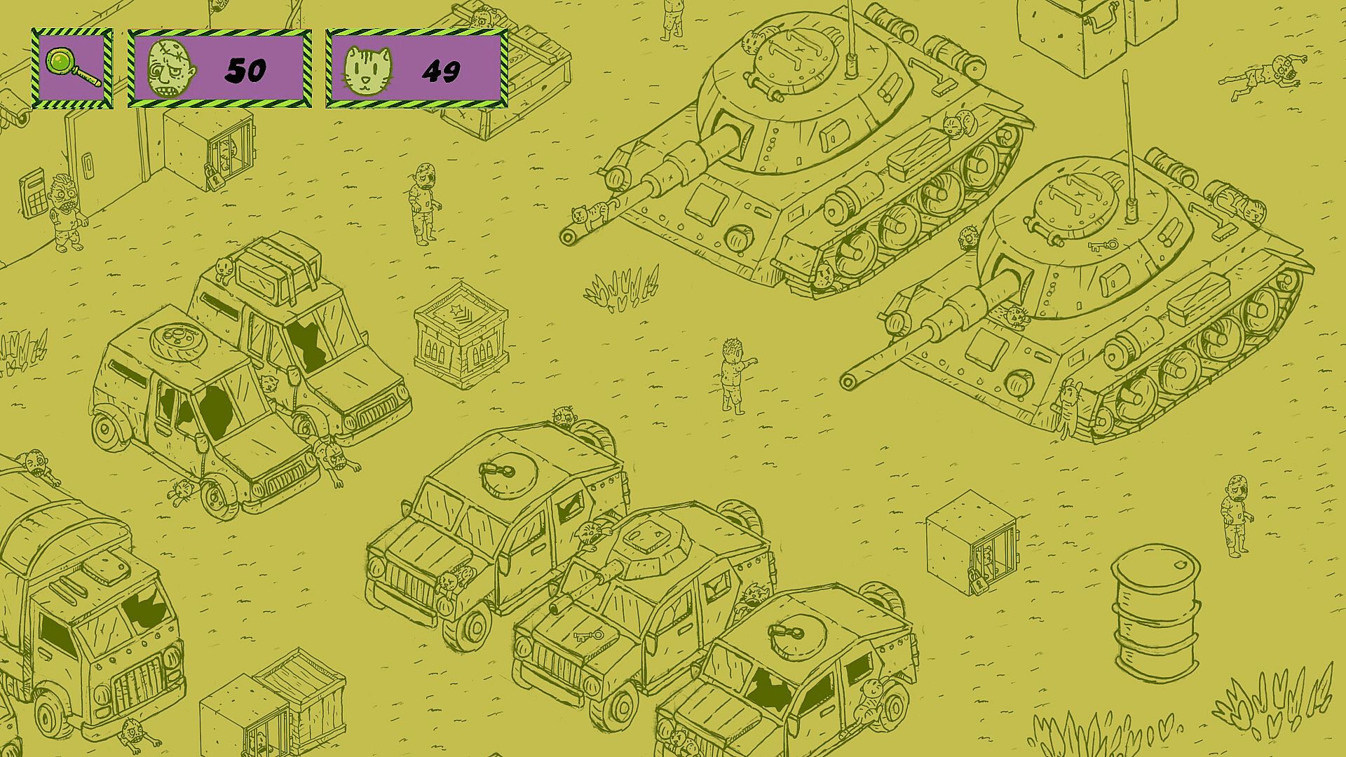 Hidden Cats VS Zombies is a hidden object game – the player's task is to find cats hidden on the map and eliminate the zombies. The game is designed in a zombie apocalypse style, but with a touch of humor.