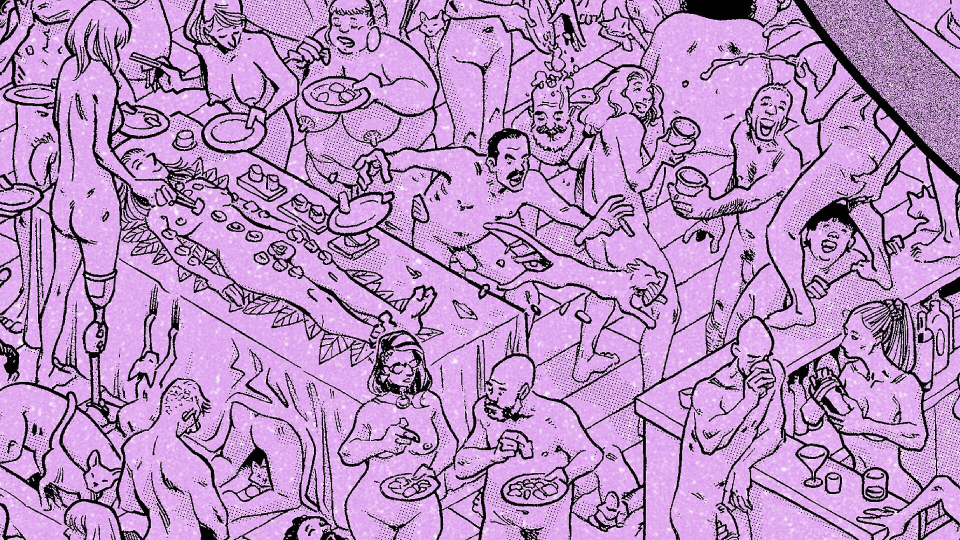 • One beautifully hand-drawn party scene packed with visual gags.