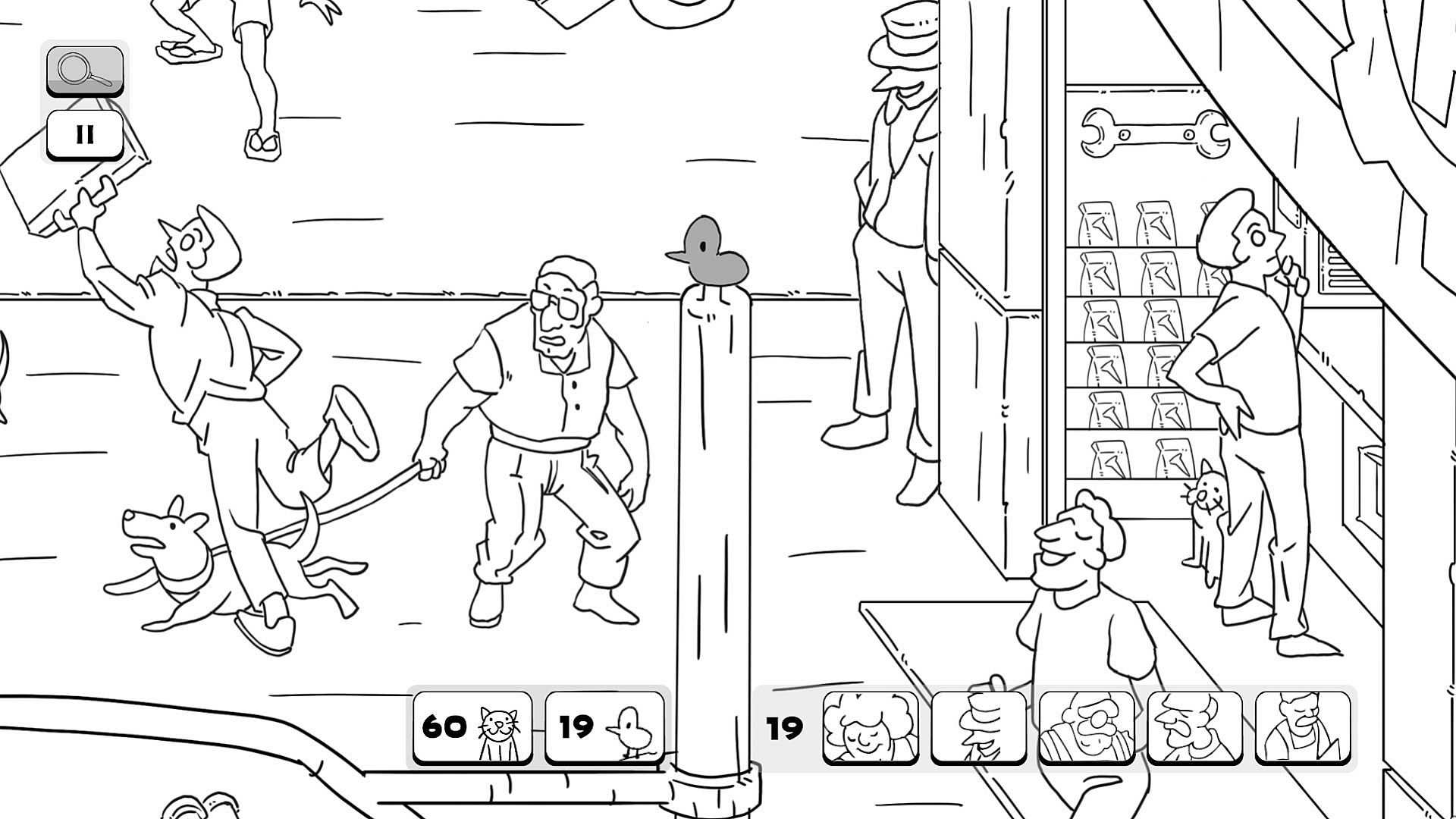Find hidden objects and investigate small mysteries in illustrated streets full of details.